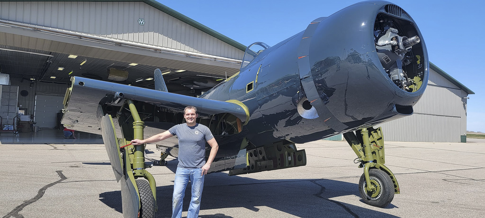 Brandon Deuel lead the Helldiver restoration team. (photo via Fagen Fighters WWII Museum)