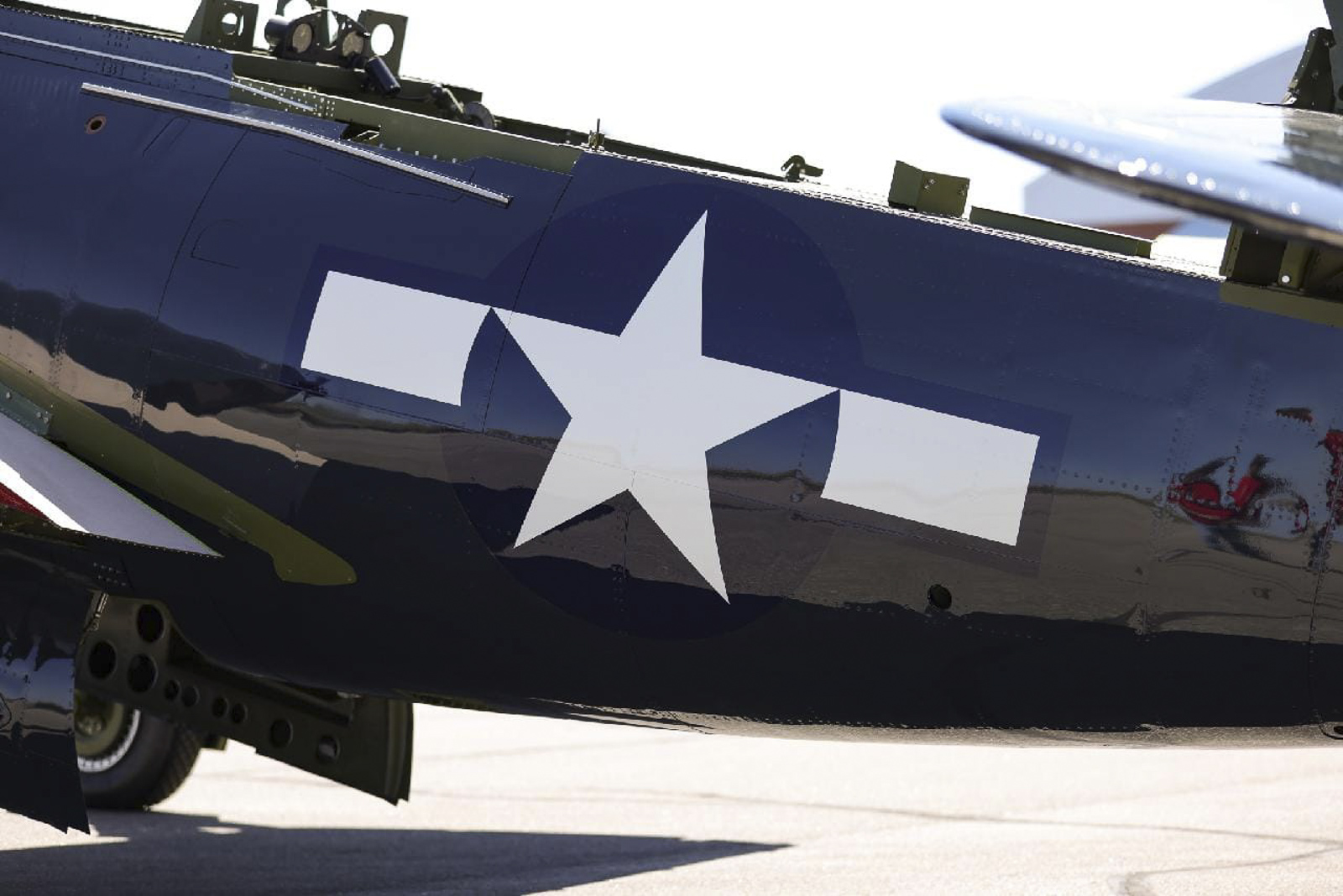 The Helldiver in the sunshine, it’s freshly applied markings gleaming. (photo via Fagen Fighters WWII Museum)
