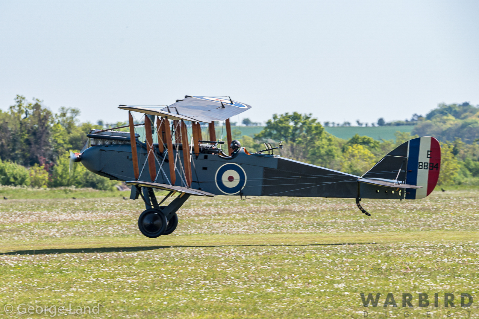 Finally on May 13th, 2019, we where lucky to witness the first flight of an authentic DH.9 in many long years when test pilot Dodge Bailey, who is one of the most experienced vintage biplane pilots in the UK, finally felt that everything was in order for a test flight. He took E8894 into the air using an into-the-wind, cross-field take-off on the grass from the west end of RAF Duxford for the first time.