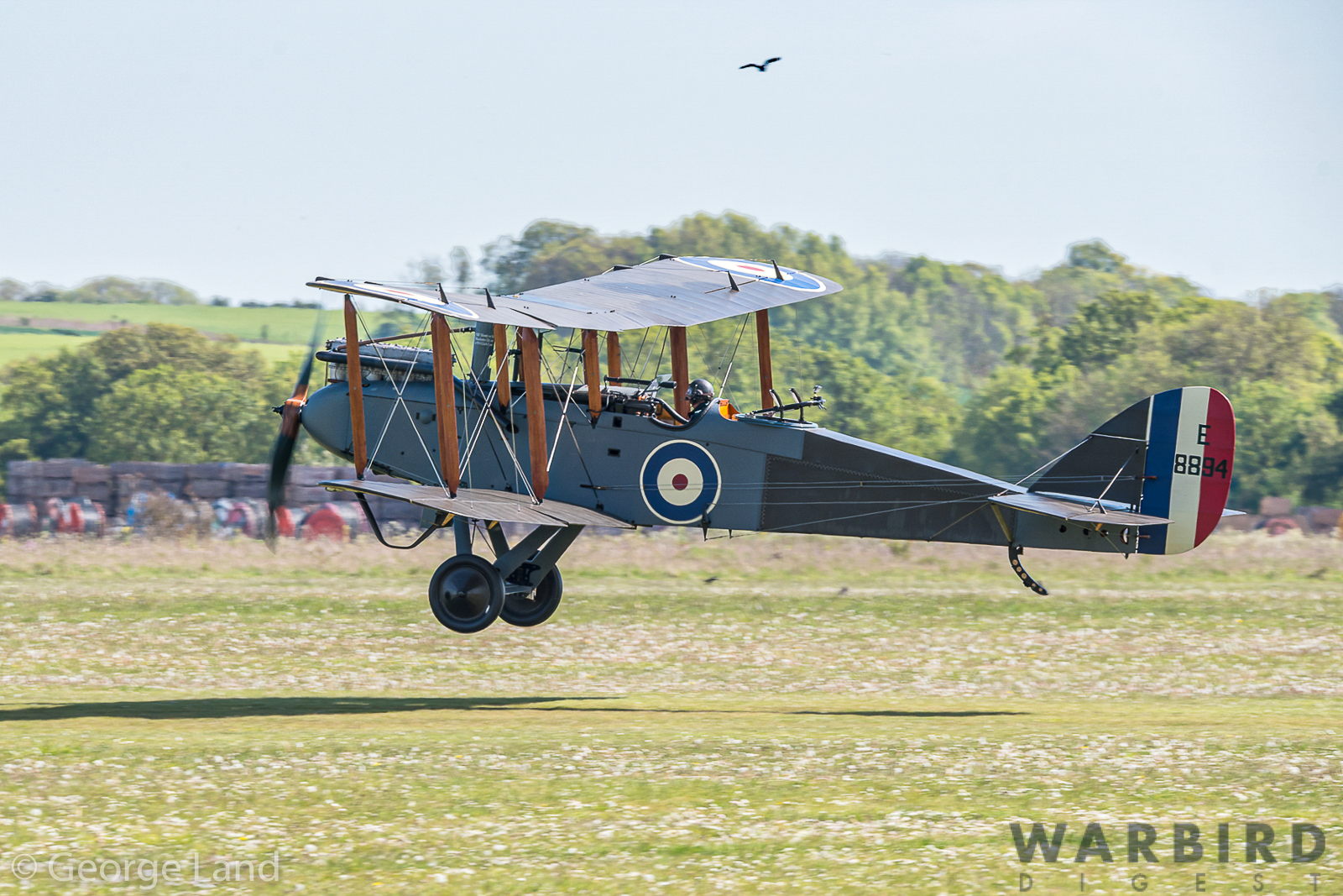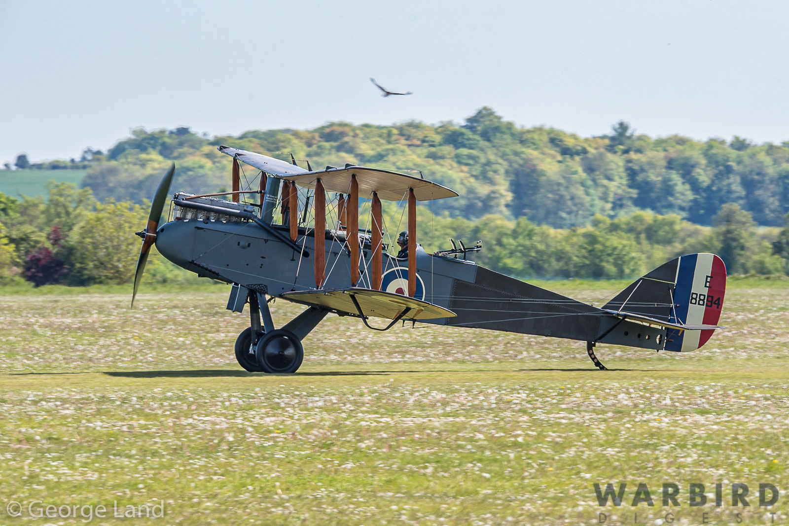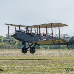 After numerous circuits of the airfield at differing heights, Dodge Bailey took the DH.9 on a run down the field in front of the tower before bringing the historic WWI bomber around for a safe cross-field landing and a successful conclusion to her first flight following restoration.