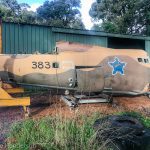 While at RAAFA Bull Creek, the Sabre sat outdoors between the two museum hangars; museum staff indicated that it was perhaps too difficult to restore. Enter Wayne Henderson; he has been restoring vintage military vehicles and artillery pieces for over 30 years, but has always wanted an aircraft to own and restore. In 2019, one of Henderson’s friends told him about the Sabre jet languishing in pieces at the local RAAFA museum. Henderson visited the museum soon after, and entered into discussions to acquire the unwanted Sabre. After several meetings, the two parties came to an agreement, and Henderson had the fighter delivered to his workshop as pictured in the image below.