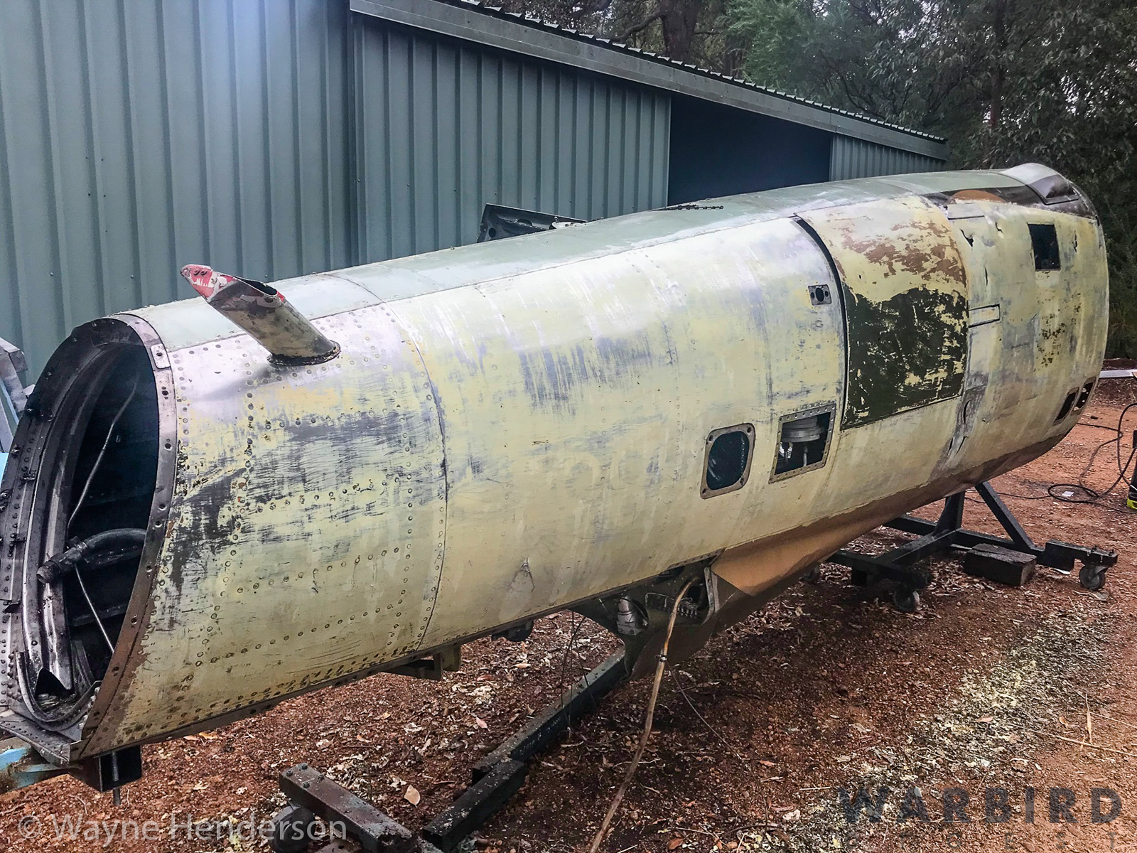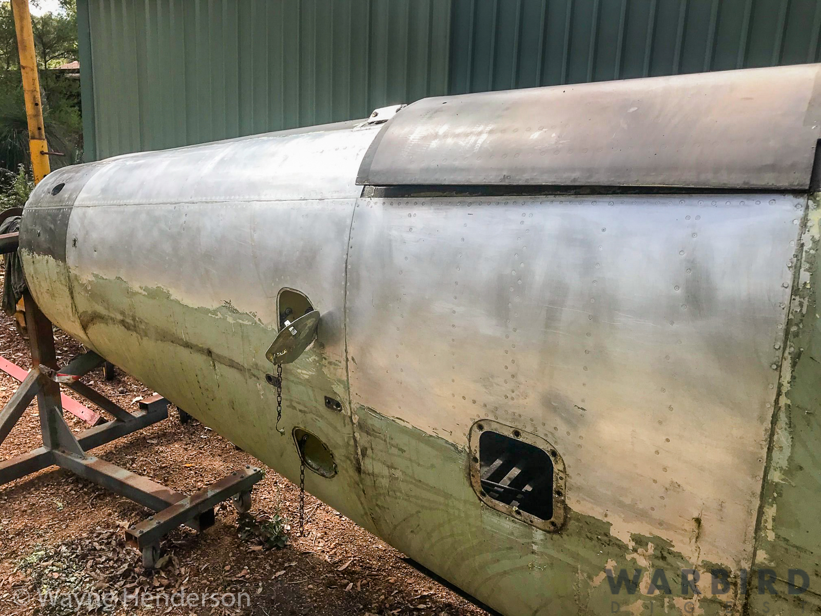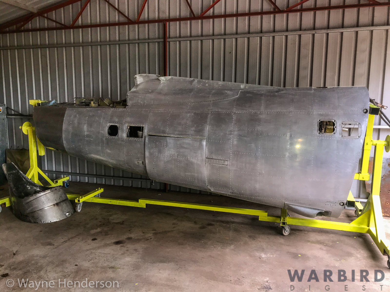 Even so, Henderson set to work on the restoration soon after it arrived at his facility. By May, 2020, he had stripped the fuselage paint and was working on sheet metal repairs in the rear section. The wings are currently stored separately and awaiting attention at a future date.
