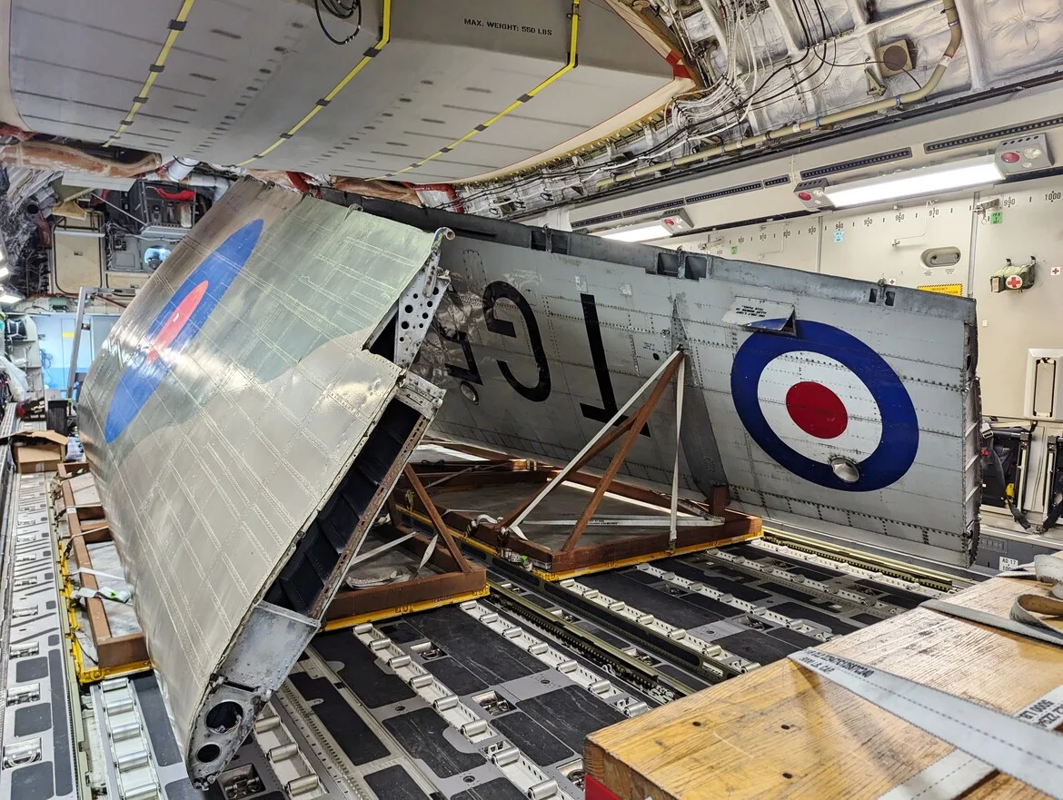 At the end of 2023, Vintage Aviation News published a short article about the RAF Museum donating the right outer wing of Handley Page Hastings transport TG568 to the Bomber Command Museum of Canada, while the left outer wing panel from TG536, the Hastings transport used to rebuild the Yorkshire Air Museum’s Halifax, was also selected for shipment to Canada. In July 2024, the two wing panels were loaded aboard an RCAF C-17 Globemaster III of 429 Transport Squadron at Prestwick, Scotland and flown to CFB Trenton, Ontario. Fittingly, 429 Transport Squadron had previously been No. 429 (Bomber) Squadron RCAF, which had flown Halifaxes in the European Theater of Operations from August 1943 to March 1945.