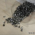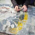 Twenty six individual stringers remained in the Typhoon’s surviving fuselage section, and these had to be separated from the skins. This entailed carefully drilling out each rivet – and a typical length of stringer contains some 200 rivets, so you can imagine how much effort this involved! Prior to drilling, it is necessary to pop a small dimple in the centre of each rivet head, using a center punch, so that the bit won’t skid off when you begin drilling. The head is then carefully drilled to a depth that will separate the head from the shank of the rivet, but without drilling right through.