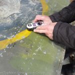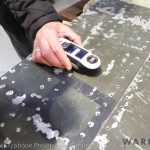 With the piece successfully dressed flat, the edges required smoothing, as the original rather ‘saw toothed’ factory-finishing left a lot to be desired – after all, there was a war on when the part was made! The next step is a chemical dip and basic cleaning to kill off any minor surface corrosion. When these steps are completed, the component is ‘alochromed’ – a chemical surface treatment that prevents corrosion and prepares the surface for the initial coat of primer paint. In this case, Airframe Assemblies used a white primer paint as the final internal color was then yet to be confirmed.