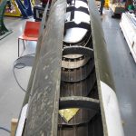 Wherever possible, the intention is to retain the original undamaged stringer portions, splicing in new sections as required. All of RB396’s stringers had been cut at the rear frame, so in another first, AA reviewed the original wartime repair manuals and determined that there was a field repair that could be applied to the stringers. This involved cutting the original material at different intervals, rotating it, and then making new stringer sections to splice in between; a field repair that is believed unused during WWII, because it was easier to replace the rear fuselage in its entirety. The final profile was perfected towards the end of 2019. Following refurbishment, each stringer section was clipped back in position on its respective skin panel to allow for safe storage and to ensure no parts got mixed in the process.