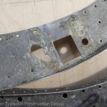 There are a number of options to replace this component. We could order the new manufacture of this extrusion, but this would require a minimum run of 500ft at a cost of £10,000, which seems a waste considering we only need 3 feet of the material for the restoration. Alternatively, new examples could be milled from a solid aluminum billet, but this always runs the risk of requiring a number of attempts before the proper part is produced – which would prove very expensive. Ideally, it would be better if we could simply find another original component. Thankfully, trustee Dave Robinson has managed to locate one within a cache of other related parts, and an initial review suggests that the frame is in far better condition than what we have. However, we can only acquire it if we purchase the entire cache of parts, which will cost £25,000. While this may seem excessive in comparison to the other options, there are significant additional Typhoon parts included in this cache which we had already budgeted for in the rebuild, so it will likely prove a far cheeper to follow this route. Indeed, by purchasing this cache, we should be able to lower some of the rebuild estimates by as much as £30,000 – and save a significant amount of time! As ever, this option will all be dependent upon raising sufficient funds, but following internal discussion, and in consultation with ARCo and AA, we consider this purchase to be the best way forward in the long term.