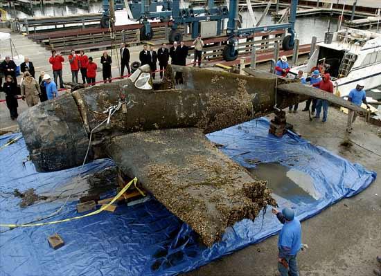 Next is a video highlighting the Corsair as the museum’s “Aircraft of the Month,” with comments by Kate Good, Associate Curator of Aerospace, and Danielle Swanson, Director of Collections. Here it is specified that the aircraft was in very good condition when it arrived and only needs some minor metalwork and a new paint job before it is ready for display. It will eventually bear the markings of “Ace in a day” Alfred Lerch, a celebrated Corsair pilot from Intrepid’s VF-10 squadron.