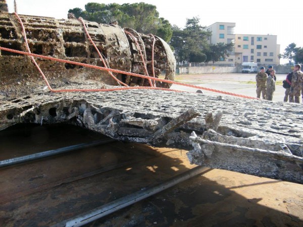 Few days go we had the opportunity to speak with officials from the Italian Air Force Museum of Vigna di Valle. At the moment the Re.2000 is located At XXXXXX .There are not major updates to report, the process will inevitably be long. It ‘was necessary to secure the aircraft with the intervention of the Italian Air Force explosive ordnance disposal corp, as the cartridge belts were full of loaded shells. It Is about to begin the process of desalination and the difficult task to clean the aircraft’s surfaces which are covered with 70 years of marine wildlife. Accordingly to the museum’s officials this process should last at least 2 years. The first impression by the museum’s restoration team about a possible restorations was not positive. Unfortunately the aircraft is in very poor condition and severely incomplete, most likely It will be exposed as it is once the “clean up” is completed.