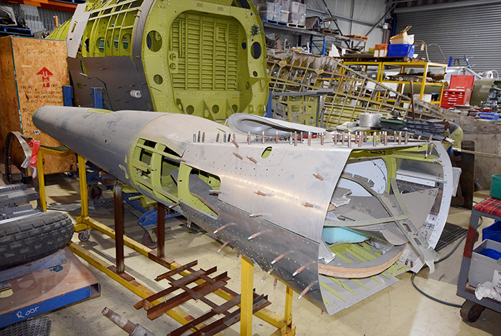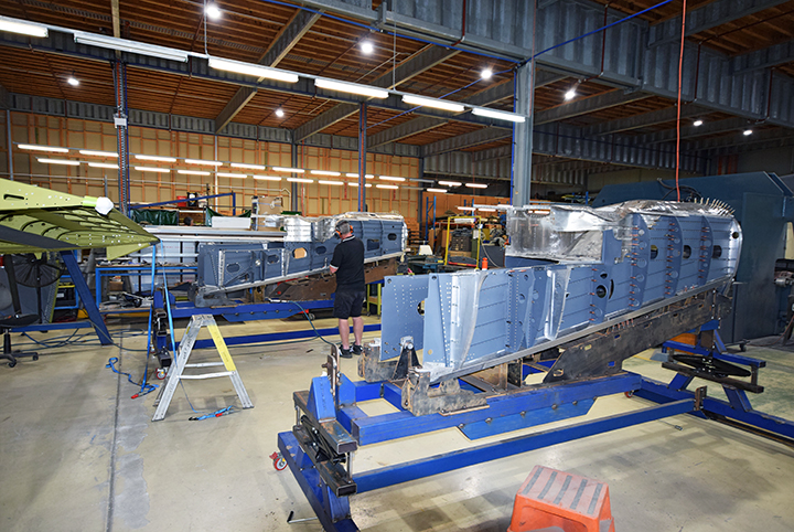 The first fuselage pod is also nearing the final stages of its structural restoration. It will have all its internal details completed, including cockpit fit-out prior to trial-fitting to the center section. Once fit-accuracy is confirmed, it too will undergo a similar process for re-skinning and final-fitting.