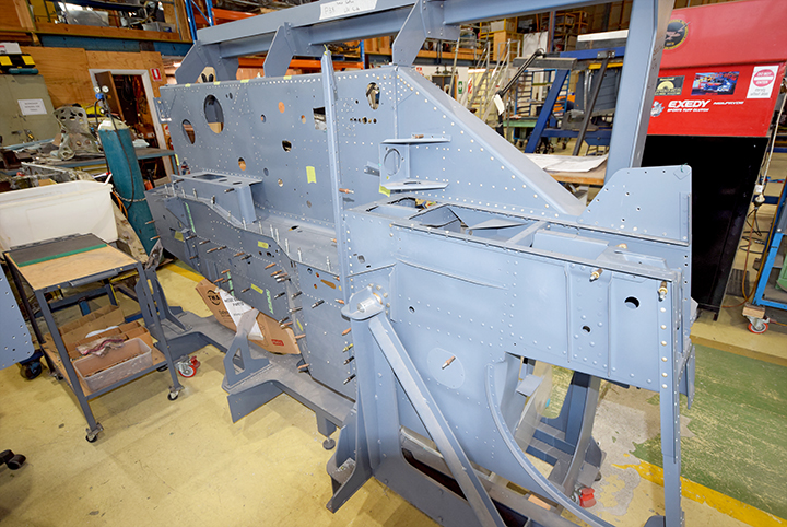 Now that the team has proven the nacelles are structurally accurate, they will remove them to finalize the remaining internal details and rivet in new external skins prior to final-fitting with the center section. The tail booms and horizontal stabilizer are also well on the way to completion, so logically these will be the next items trial-fitted.