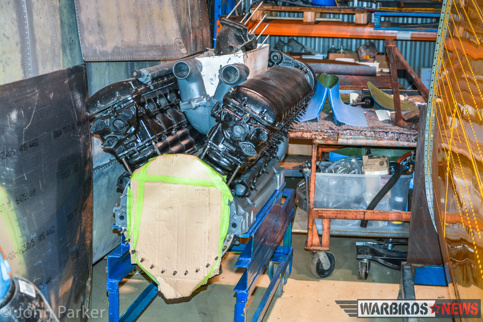 The restoration shop is located within one of the large hangars belonging to the world famous Historical Aircraft Restoration Society museum, better known as HARS, and is run by Rob Greinert, a legendary aircraft recovery and restoration expert. One of the Lightnings will fly again with HARS, while the other two will be returned to static condition. According to widely published sources, Greinert is known to have substantial remains from P-38G 42-12847 “Dumbo!” recovered from the Solomons in the early 2000’s and P-38F 42-12647 “Dottie from Brooklyn”, as well as parts from P-38F 42-13084 and the tail booms from P-38H 42-66905.
