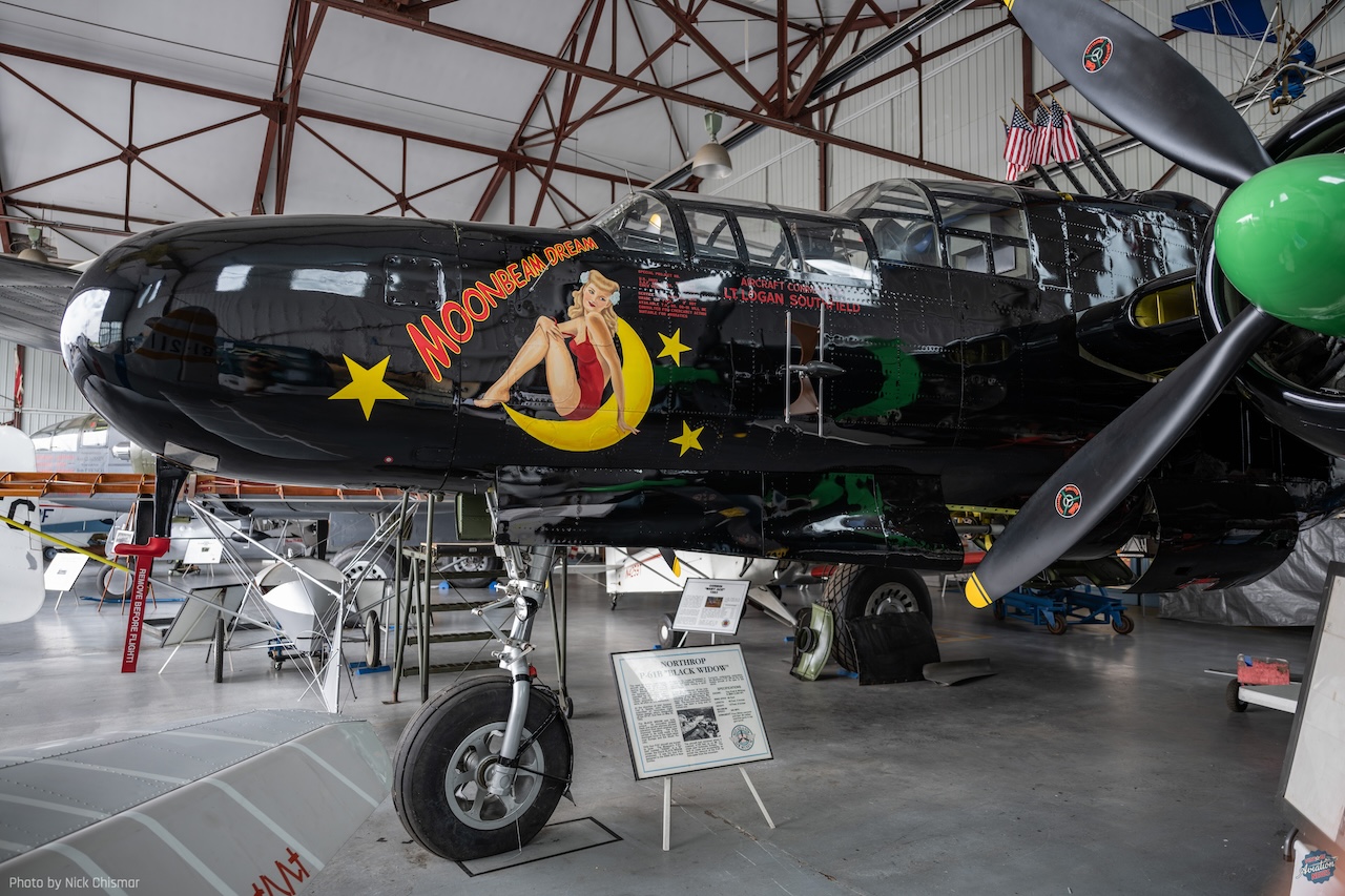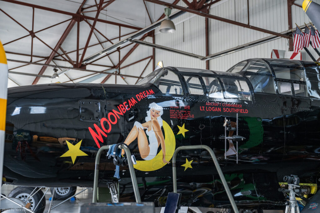 Just over a month ago, in June 2024, the Mid-Atlantic Air Museum (MAAM) unveiled a brand-new paint job on their Northrop P-61B Black Widow, USAAF #42-39445 / N550NF. The massive fighter sat proudly, fully covered in gloss black paint, as visitors from around the country stopped to take photos during the museum’s 33rd Annual World War II Weekend. Just recently, during the museum’s members’ day picnic on July 20th, there was another unveiling to do. After 79 years, their P-61 has its own identity and nose art; Moonbeam Dream.
