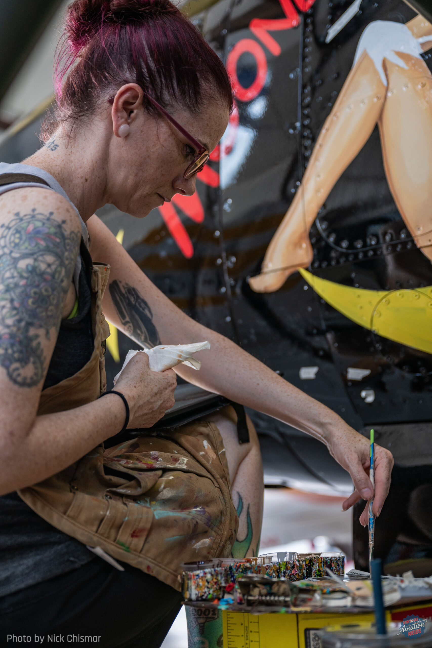 Special thanks to the Mid-Atlantic Air Museum and Jennifer Thomas for allowing me to photograph the process of painting the nose art. Thank you to Russ Strine and Jennifer for taking the time to talk about their process in this latest part of the restoration.