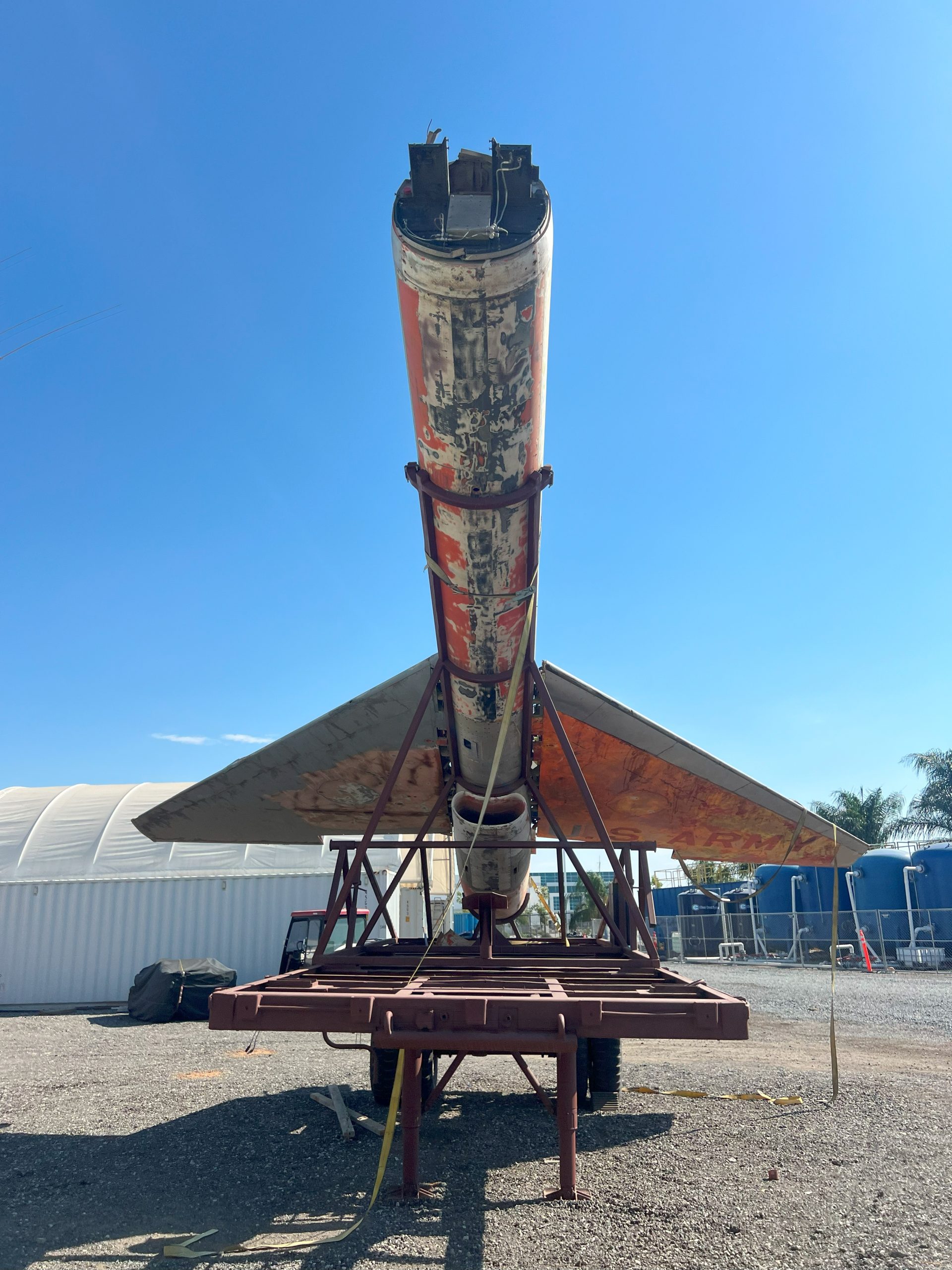 Since the arrival of the Osprey, the March Field Air Museum has been restoring it for static display. “The biggest challenge was replacing the damaged or missing parts,” says Stathatos. “With only 15 built, there’s not a lot of photos or documentation to get a good look at the drone.” One of the most challenging aspects of the restoration was in refabricating a vertical stabilizer for the Osprey, as related by Stathatos: “The drone had a complete vertical when it was in Quartzite, AZ until a gust of wind blew it off of the makeshift cradle and crushed it beyond saving.” This section of the drone was later fabricated by March Field Air Museum volunteer Paul Torr using surplus parts from a T-28 Trojan and an Ercoupe. Torr also repaired much of the metal on the SD-5 and replaced sections deemed beyond repair to make the drone ready for display.