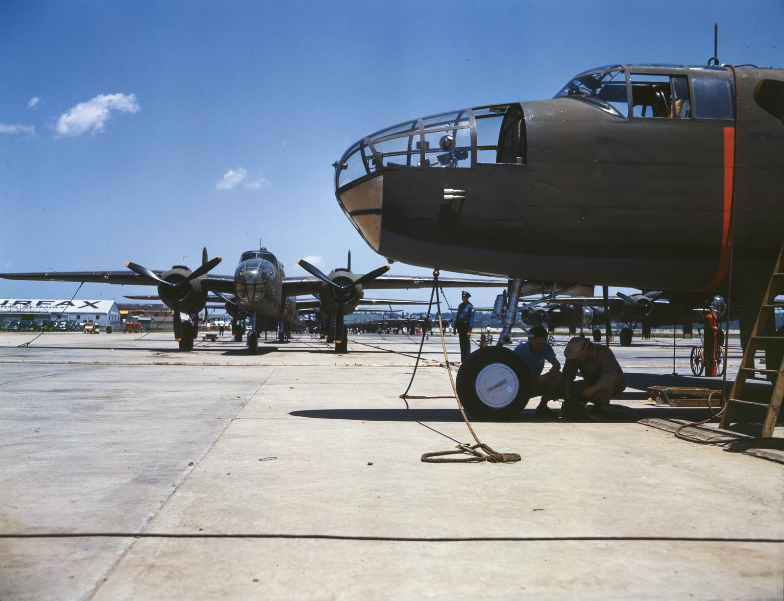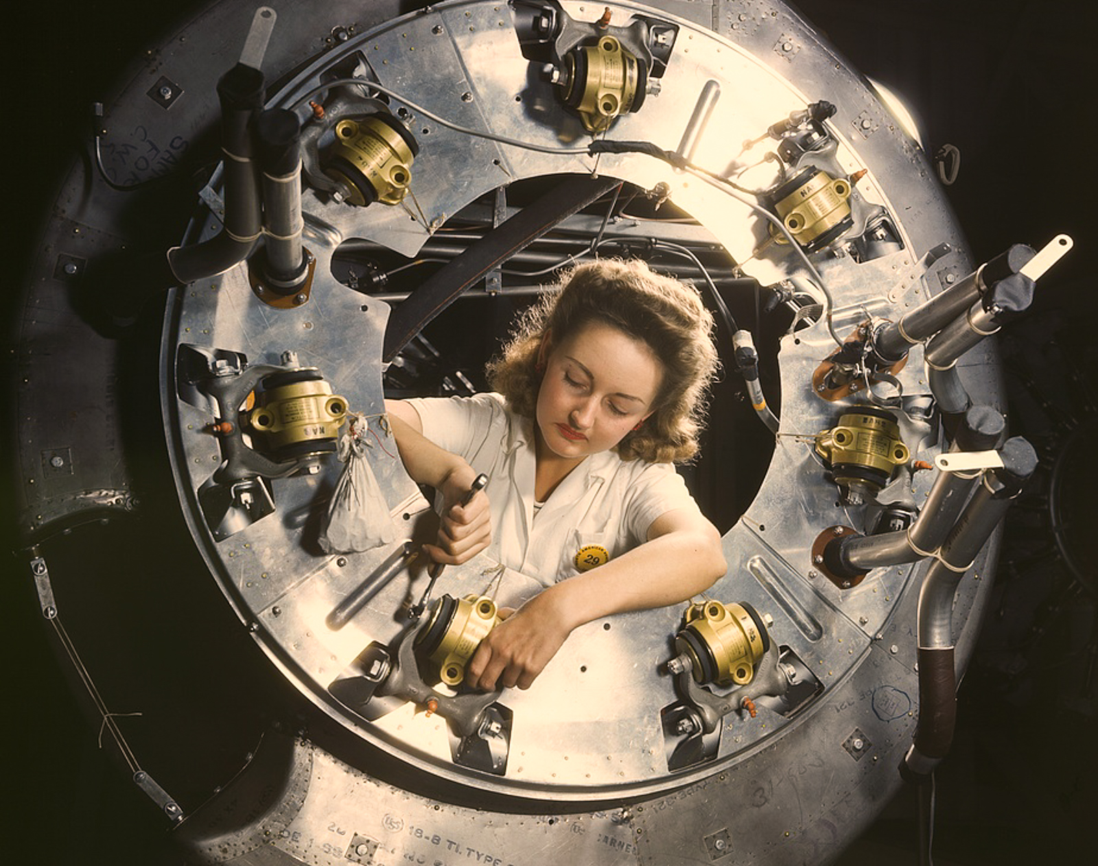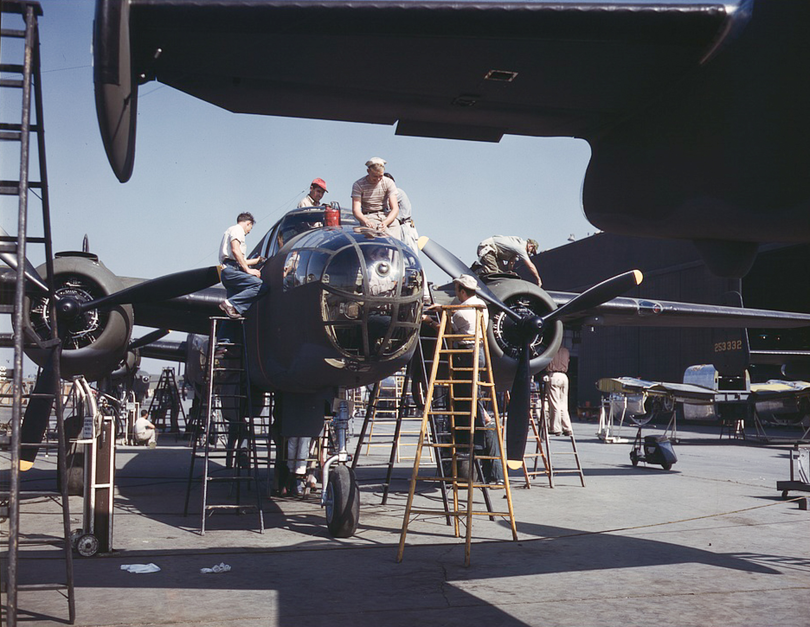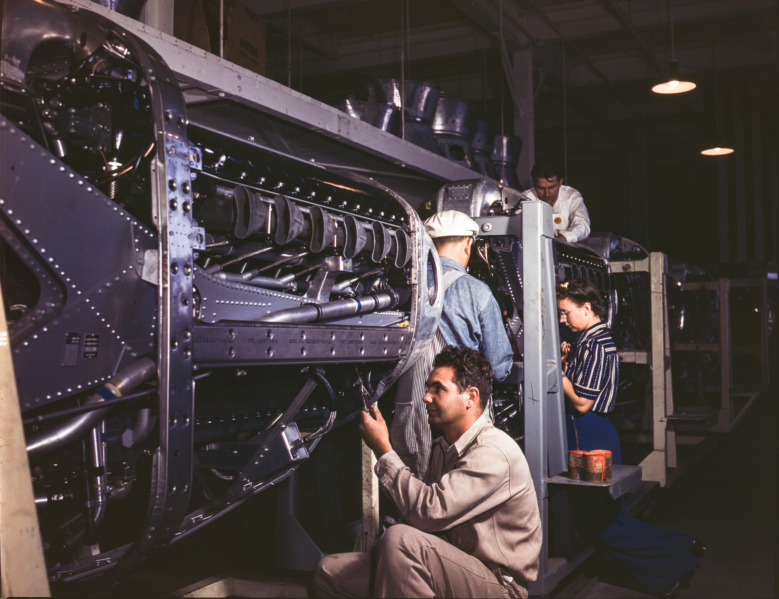 The American aircraft industry produced just under 300,000 aircraft between 1940 and 1945, a staggering feat by any measure, especially considering that just 3,600 rolled off U.S. assembly lines during the entirety of 1940. While aviation companies such as Boeing, Douglas, Curtiss and their like would design the aircraft, and put them together at their factories, it was simply impossible for them to both make all of the components and subassemblies on site and keep up with production demand. They had to subcontract out the bulk of this work once a design received an order for full-scale production. Indeed, much of America’s entire manufacturing base was involved in this effort – from small ma and pa furniture shops to industrial giants like Ford and Chrysler – whether they were making map cases or wing panels. Some companies, such as Ford, even had their own aircraft assembly lines, like the one in Willow Run, Michigan which built B-24 Liberators.