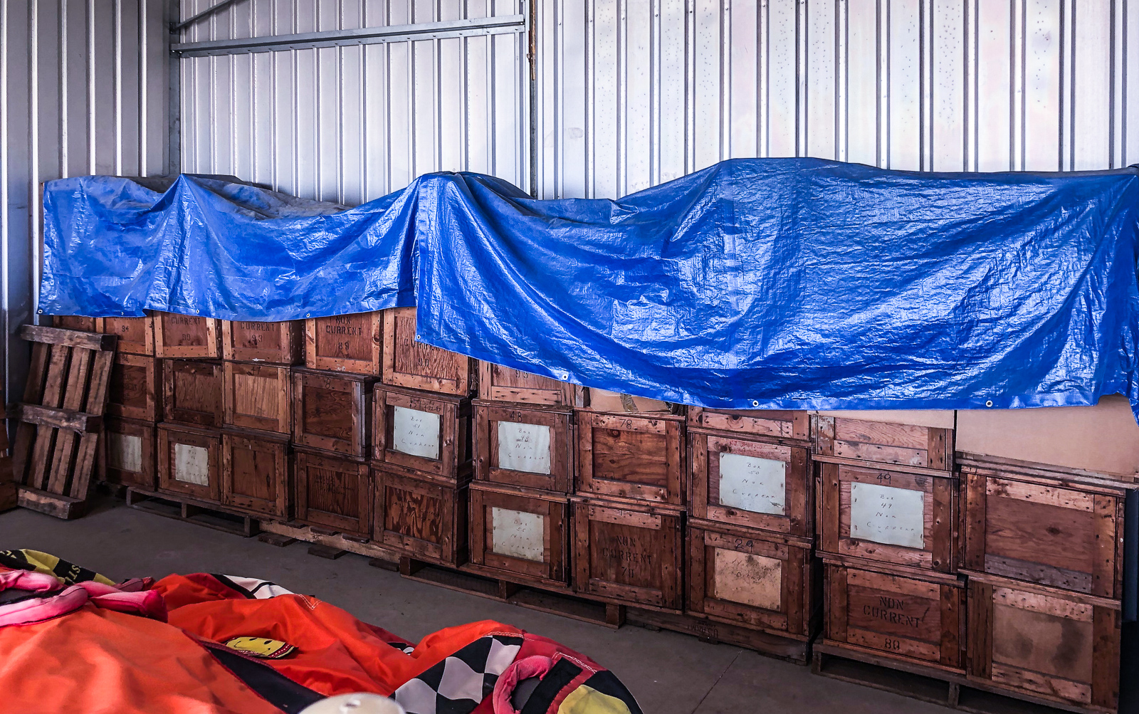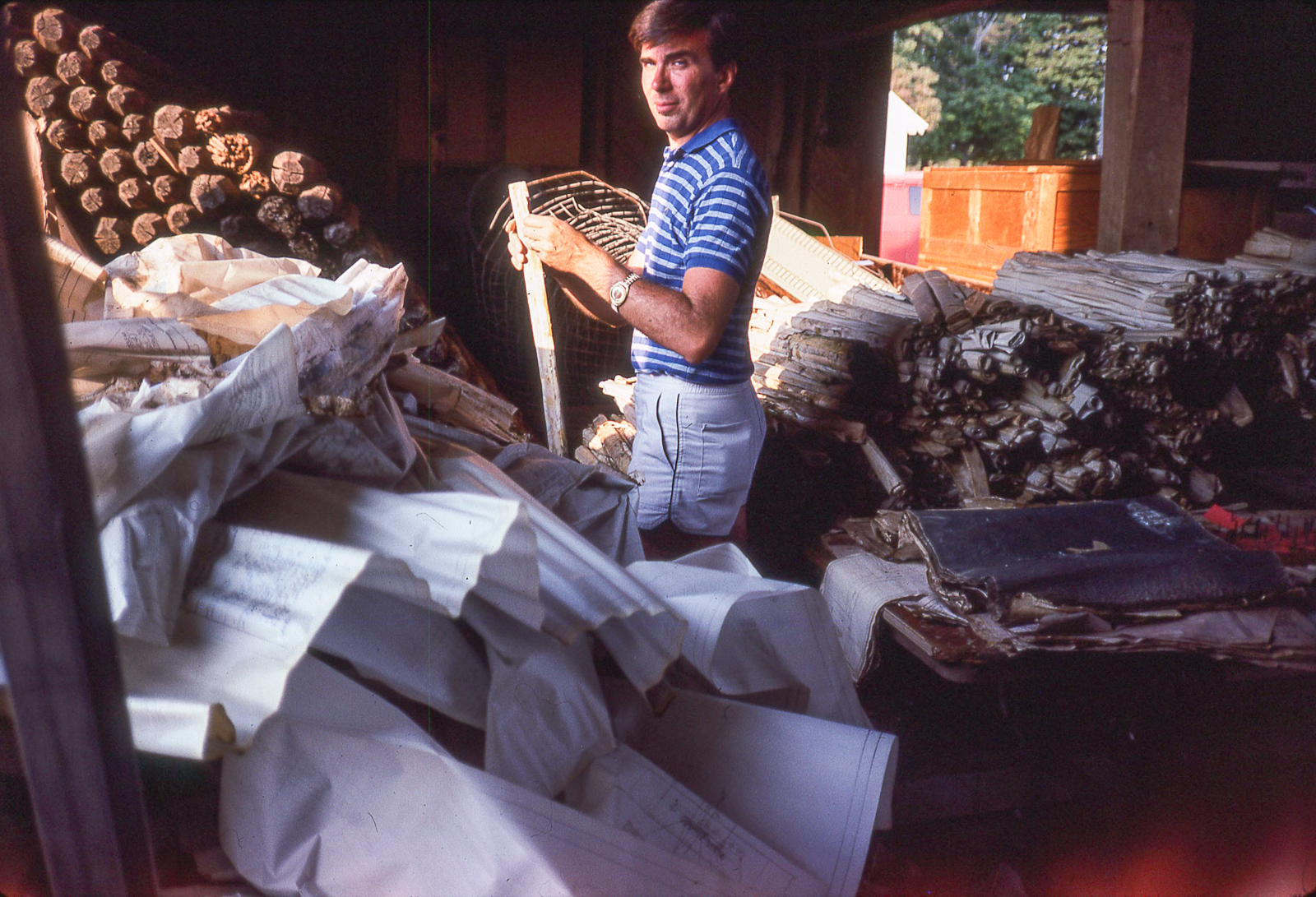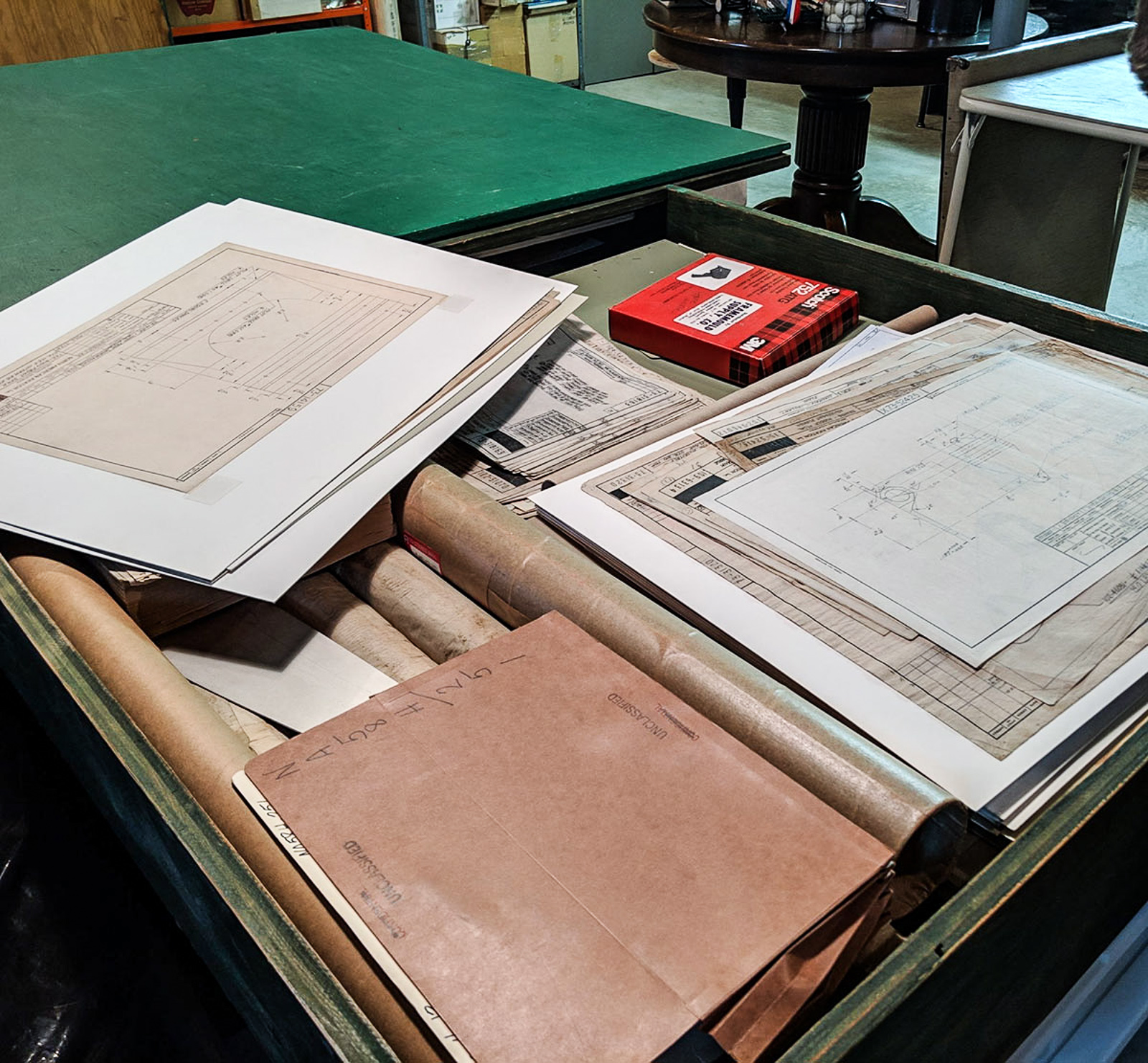 Once the drawings were dry enough, Ken sorted, re-rolled, and boxed them up. He took many to his home, and stored the rest at his hangar at the Warren County Airport in Lebanon, OH. The drawings would remain in this same location for the next 32 years, until 2019.