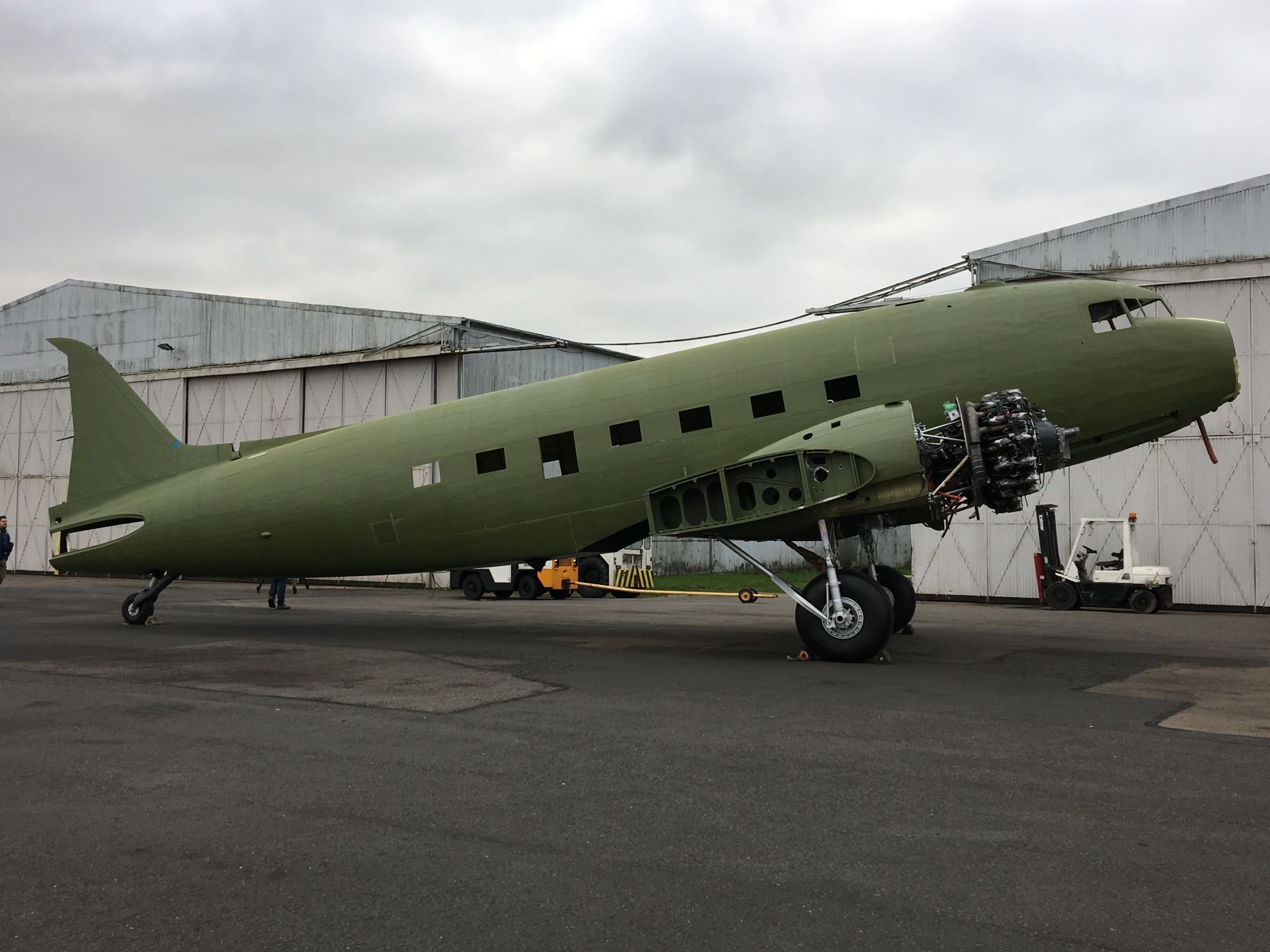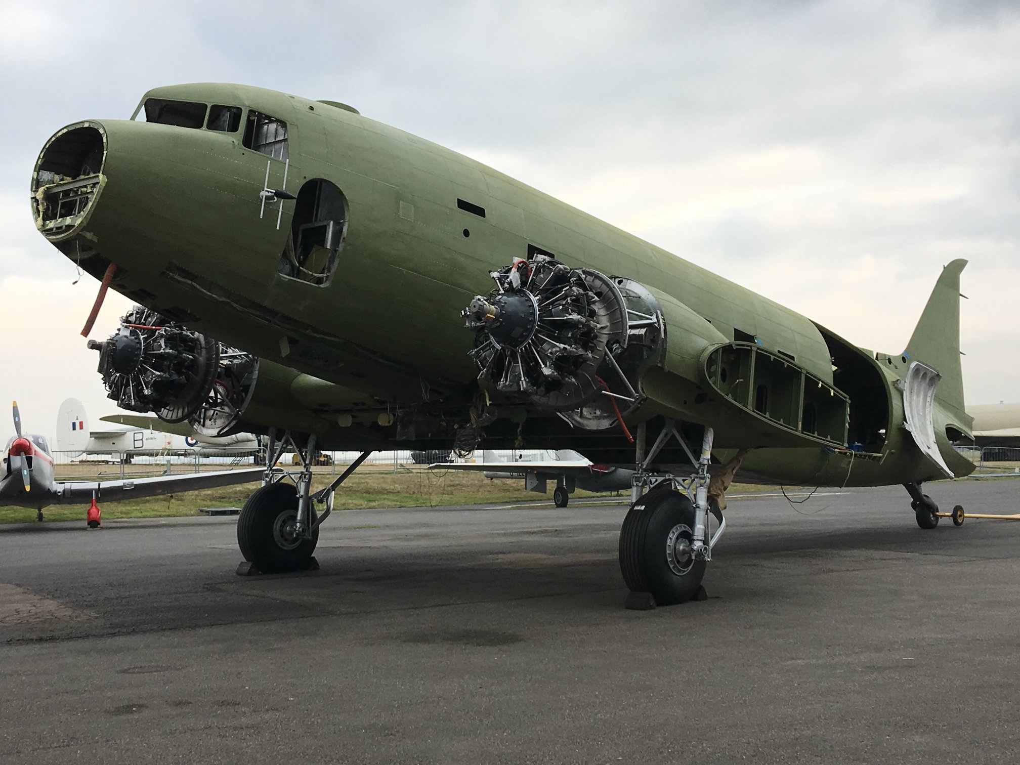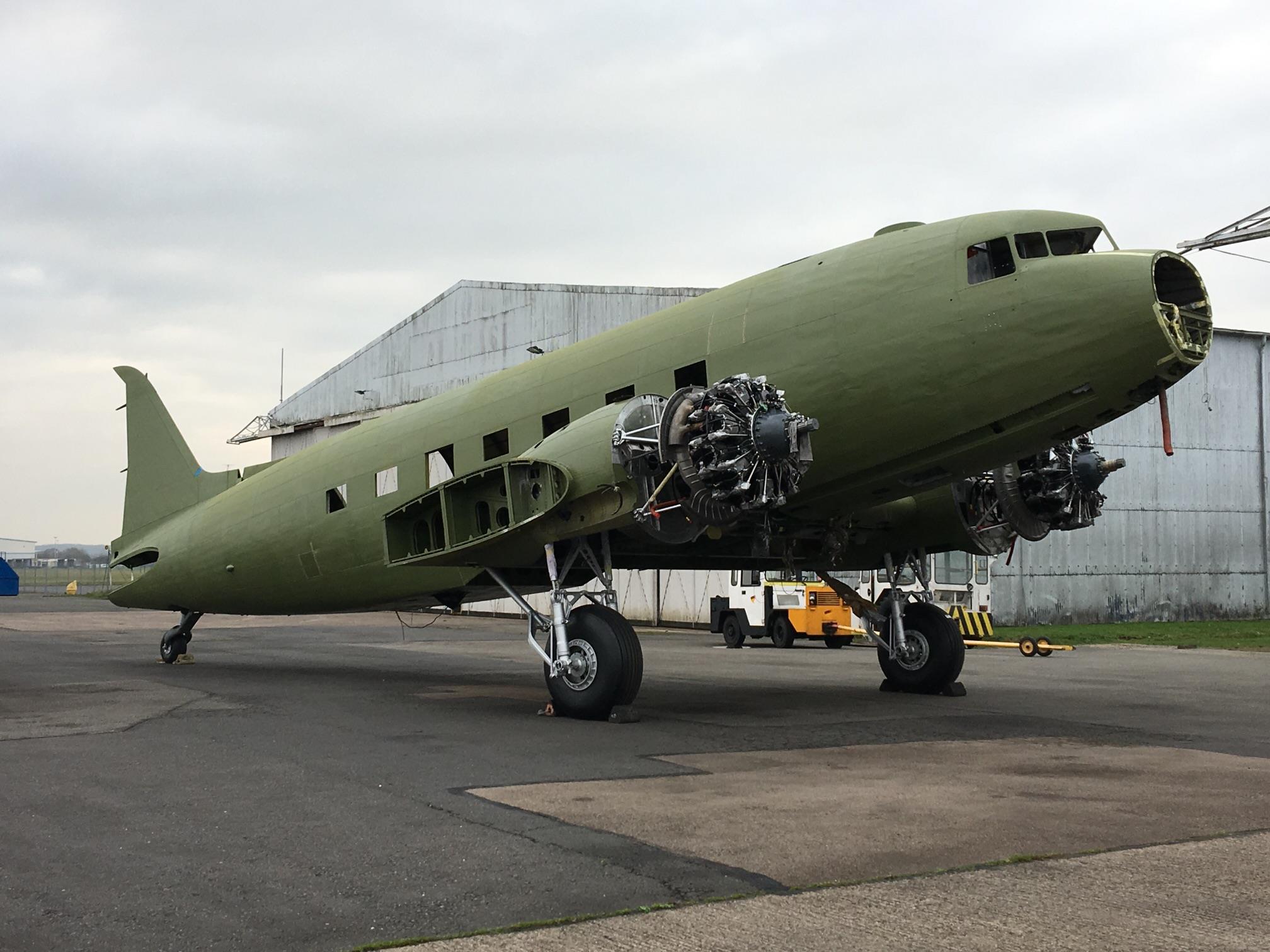 The C-47’s restoration began with Frank and Glenn Moss in Shell Creek, Florida in 2012, where a lot of progress was made. In mid-2017, the Walker family moved the airframe to Coventry in England, where she is currently under care of Ben Cox of Air Atlantique, who has an extraordinary level of experience on C-47s having helped maintain the airline’s fleet of DC-3s, DC-6s etc. over many years.