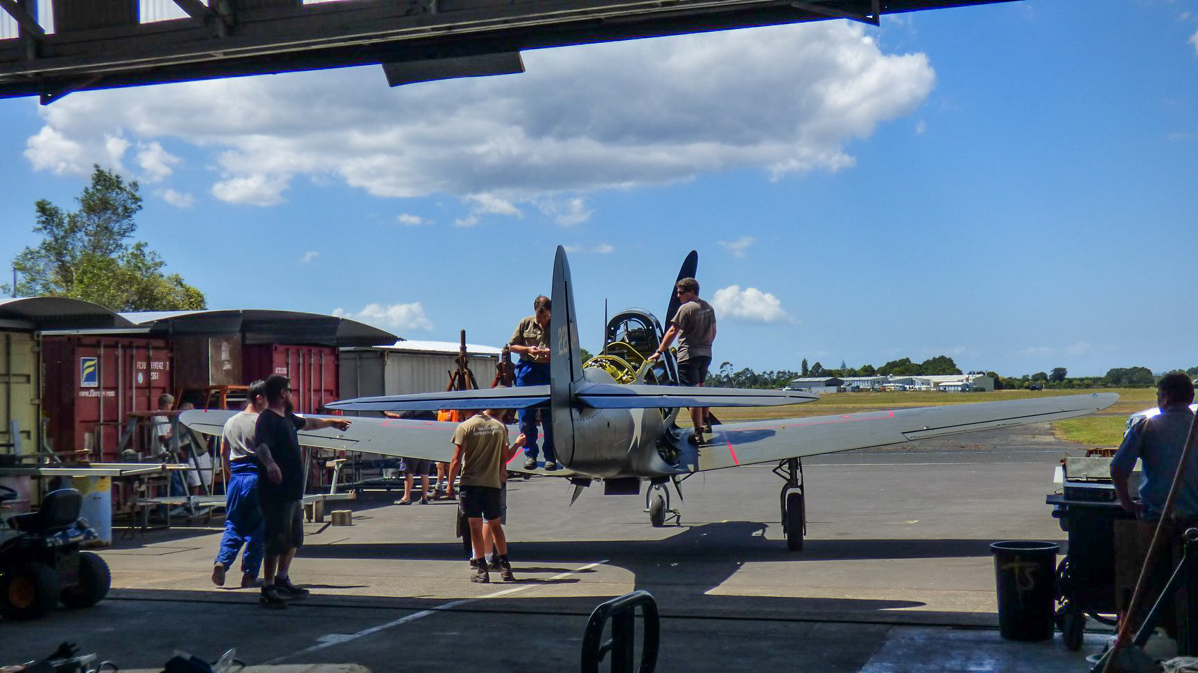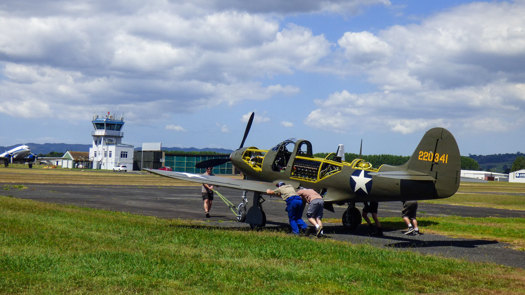 According to Dave Homewood, who captured the images in this article, the restoration team took the Airacobra out to the apron for a run up at least twice during his visit on February 5th, making adjustments where they found necessary. Everyone seemed really happy with the performance though. Homewood added that if all goes well, he was told that New Zealand’s Civil Aviation Authority are expected to sign off on the paperwork allowing the aircraft (registered as ZK-COB) to make her first post-restoration flight sometime soon, perhaps as early as next week.