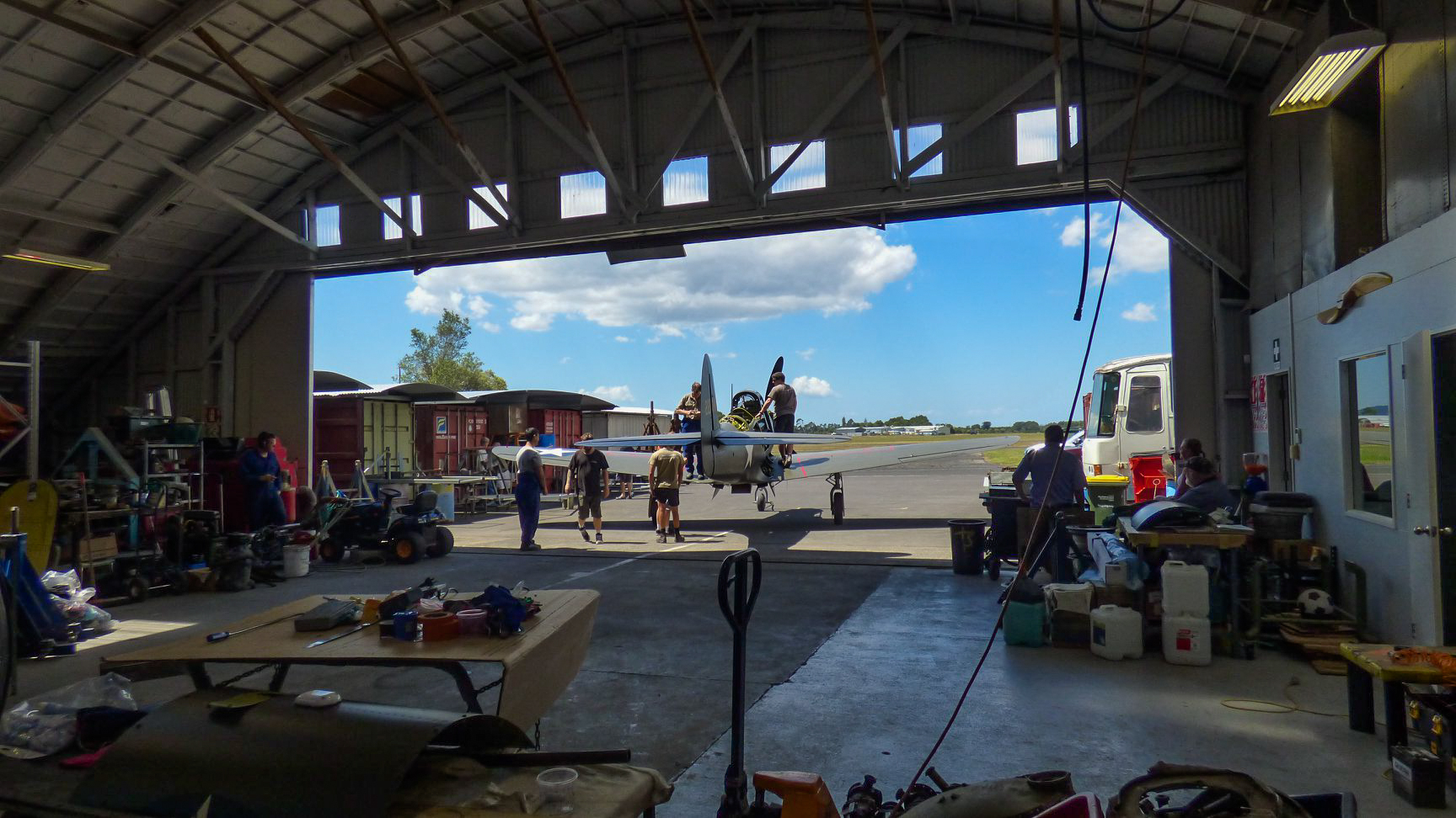 We received word today from Pioneer Aero’s Paul McSweeney that the high power engine tests have been completed, and that other than some final tweaking, the Airacobra is mechanically complete. So it only awaits these last adjustments and the CAA’s approval before a first flight should be able to take place. Paul also sent us these marvelous photographs of the Airacobra taken yesterday morning.