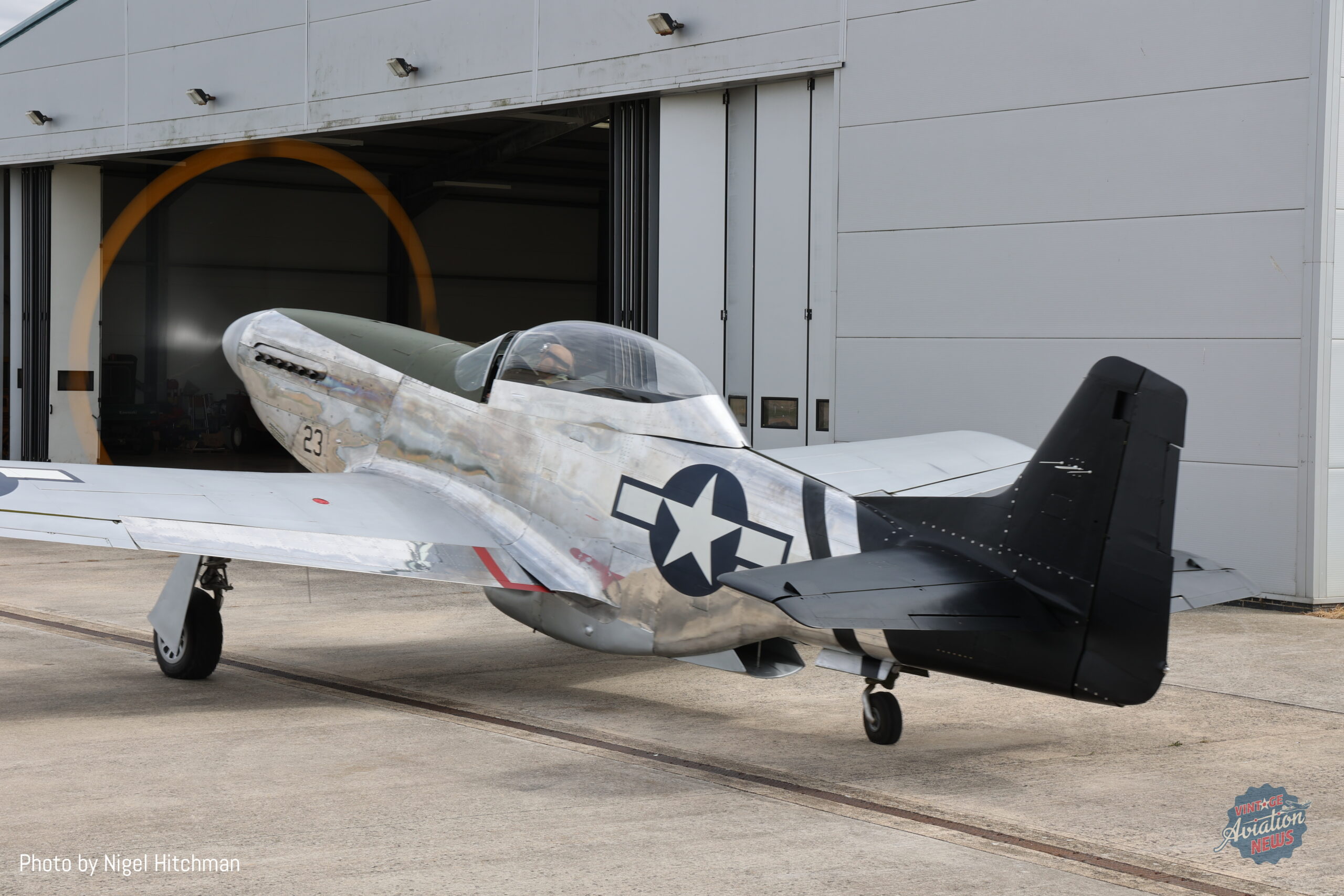 Today August 25, 2023, P-51 Mustang G-CLNV was flown at Sywell Aerodrome for the first time after an extensive restoration by Air Leasing. The pilot for the first flight was well-known warbird test pilot Pete Kynsey, who carried out three flights in it today, including the official CAA air test. Paperwork permitting the aircraft will be delivered to its owner ‘W Air Collection’ at La Ferte Alais, France next week.