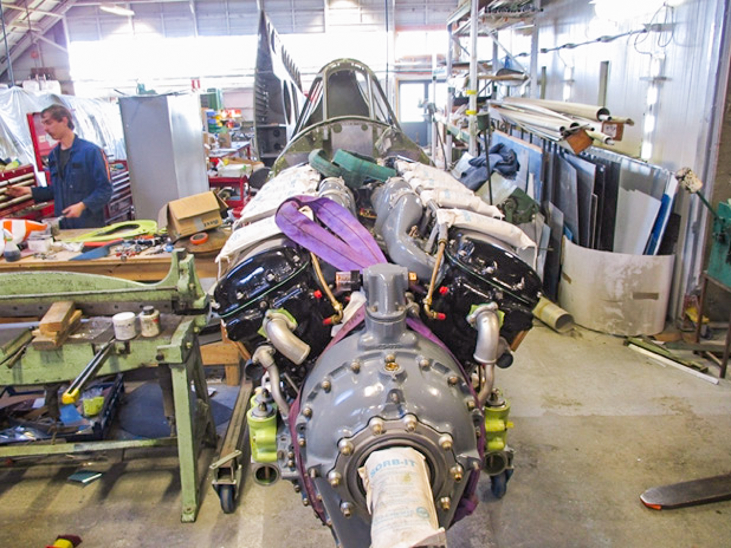 Currently in the hangar, the team is finishing a Bell P-39Q Aeracobra for Jerry Yagen and is well advanced with the restoration of a brace of P-40E’s. Also in storage for future restoration are two Vought OS2U Kingfishers and the only known example of the mighty de Havilland DH.103 Sea Hornet.