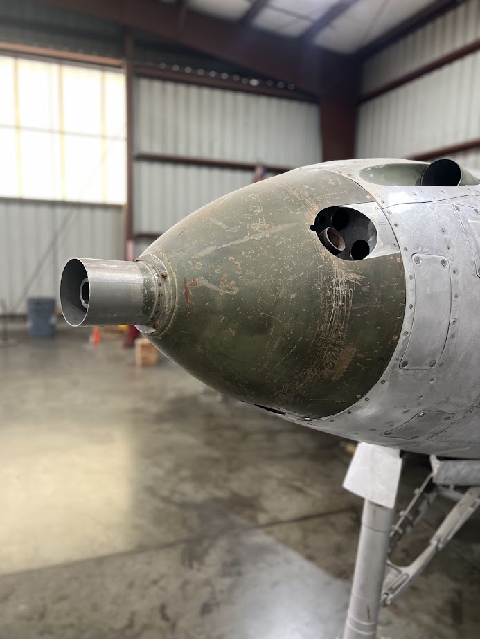 During his time in the 71st TRG, Tate had his externally mounted drop tank painted with a shark’s mouth. P-39N 42-19027 was only one of several P-39s named Little Sir Echo flown by Lyndall Tate during the war, and in fact, some of these were P-39Qs, which differed from the P-39N, which featured four .30 caliber machine guns mounted inside the wing, with two guns on each wing, and the P-39Q, with two .50 caliber machine guns placed in fixed pods on the underside of the aircraft’s wings. The previous restoration at Tallichet’s facility had restored the aircraft with no wing-mounted guns, but the current project has restored this configuration on the aircraft, along with removing the Bondo that had covered the ejection chutes from which spent cartridges would fall from the aircraft. On July 16, 1944, P-39N 42-19027 was officially written off and abandoned at Tadji Airfield and was later one of the P-39s recovered in 1974 by Armstrong and Darby.