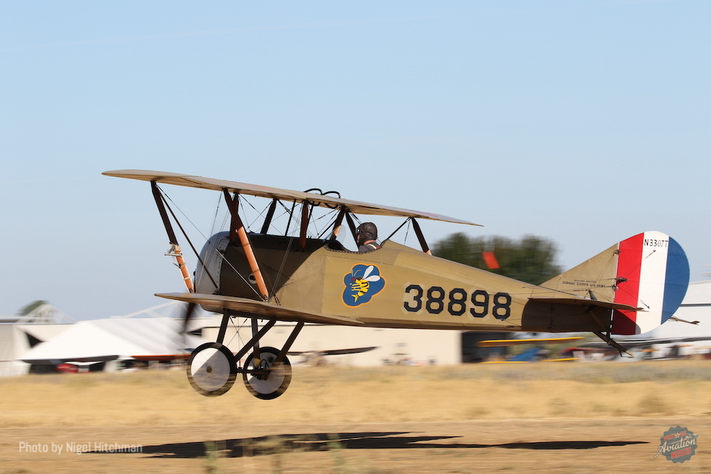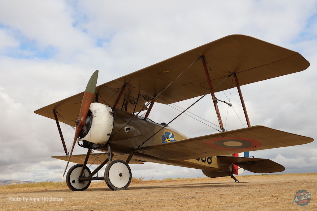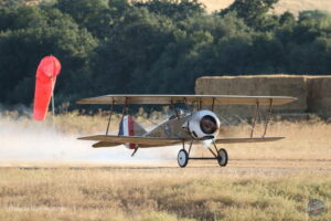 The surplus ‘Tommies’ available postwar saw a brief boom in civil registered examples, many re-engined (including with the Curtiss OX-5) but as a single seater they were far less useful than the Curtiss Jennies. However, while the S-4C type never saw combat for real, as a ‘single seat fighter’ easily available in America (unlike the actual combat types used in Europe) ‘Tommies’ became a staple of the first American movies about the daredevil pilots of the Great War – most of which were filmed in California, pretending to be France. This was the peak of the type’s career. [The full report on the 2023 Ala Doble fly in will is published here. The report on last year’s event can be found here.]