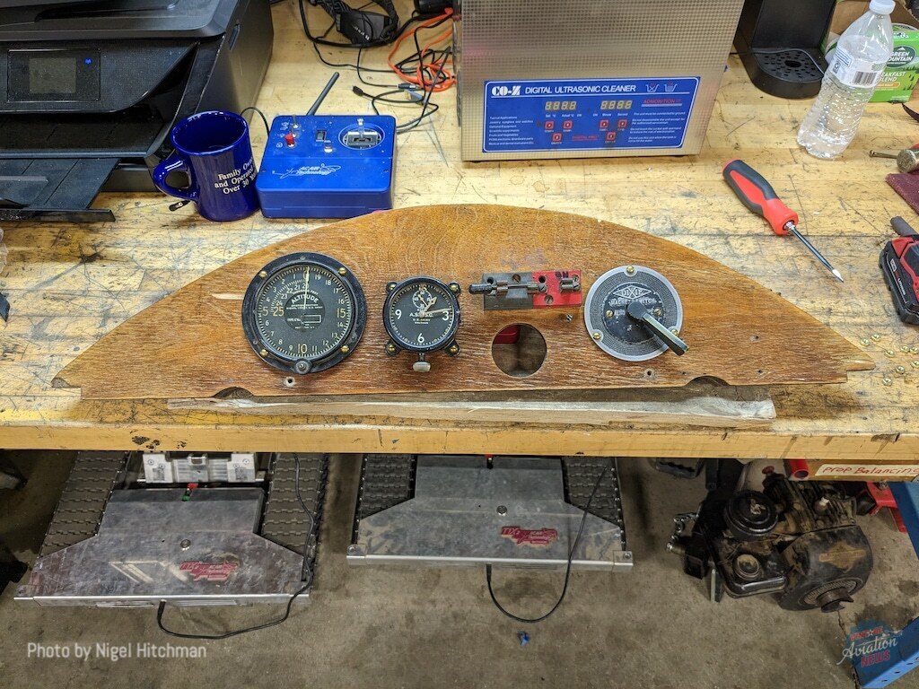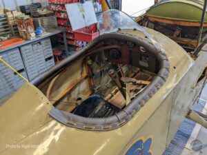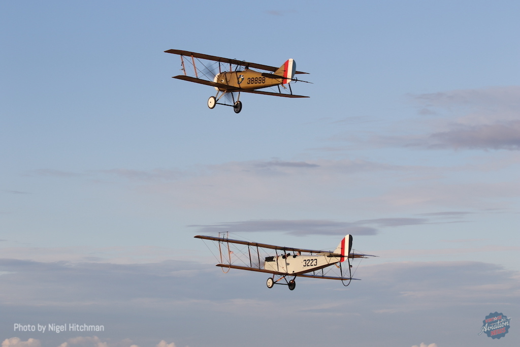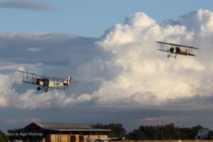 After a good look over, adjustments were made to the elevator trim, and the ailerons were re-rigged to have less droop – and hopefully more effect. There was no flying Friday due to a gusty crosswind, but Saturday morning the weather was perfect, so another test flight was performed. Another 30 minutes in the air, including some air-to-air photos, and it was chalked up as another successful flight, with the rigging changes making a slight improvement. A third, longer flight was carried out Saturday afternoon, including some formation flypast with Walt Bowe’s Curtiss JN-4H Jenny: a unique sight of two original 1918 aircraft flying together.
