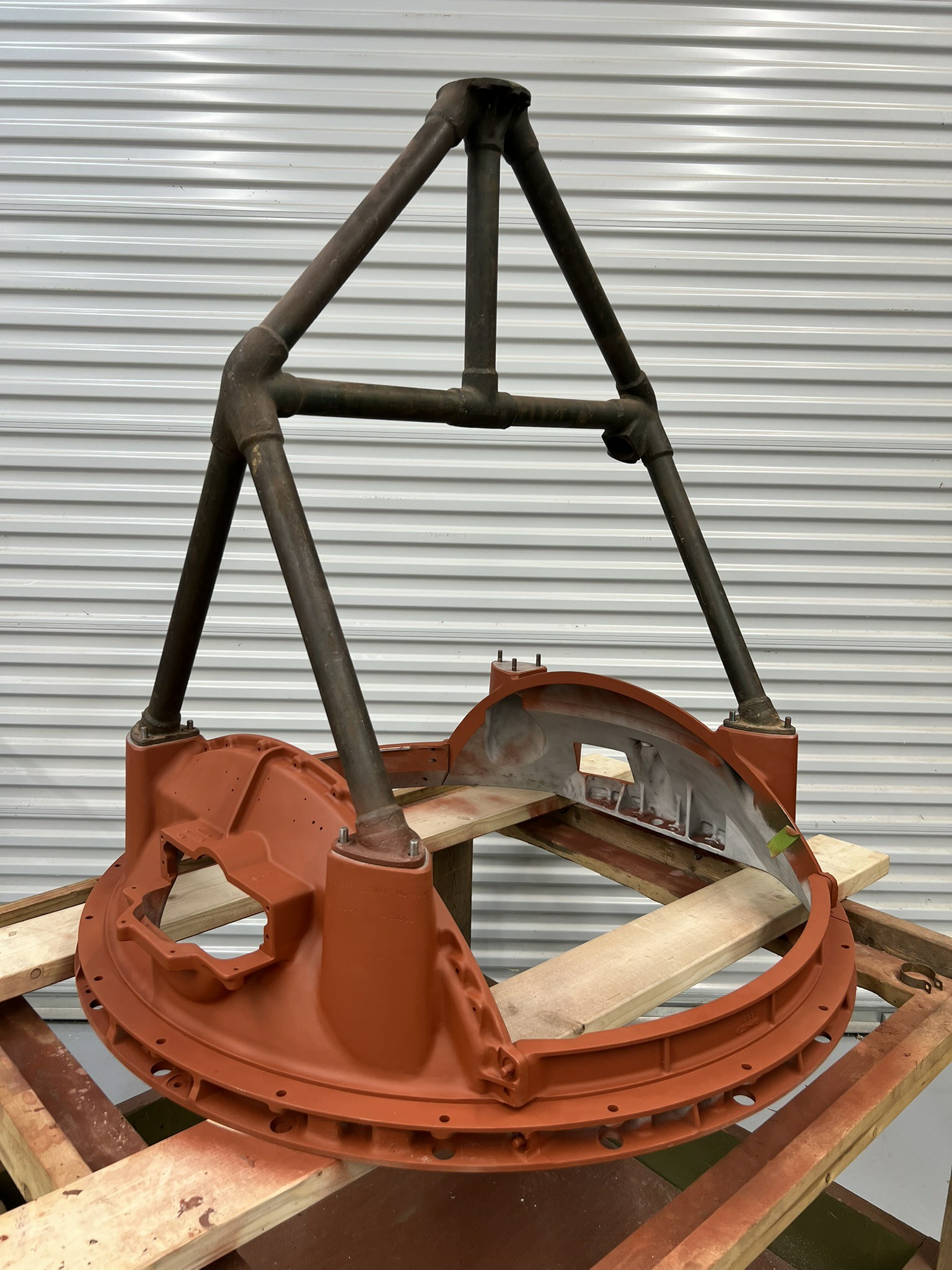 The most difficult elements are the powered turrets. In 2023, Hangar Thirteen acquired a Type A-2 Ball Turret trunnion and hanger assembly, which they are restoring alongside the motor assembly. However, a ball shell has not yet been found. Since the original blueprints are lost, Hangar Thirteen had a surviving early ball turret 3D scanned in 2022 to reverse-engineer a casting. A similar approach was used for the housing assembly of the Type A-1 Upper Turret.