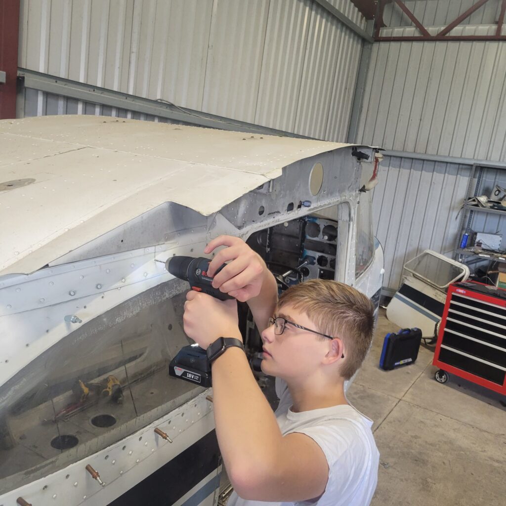 One of the students hard at work on the starboard elevator. [Photo via Big South Fork Aerospace Academy]Special thanks to Dr. Tim Smith for his assistance in the making of this article. Additionally, we will be posting an interview of Dr. Smith at Oshkosh with Moreno Aguiari on our YouTube channel. Watch this space for updates!