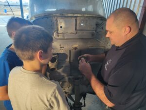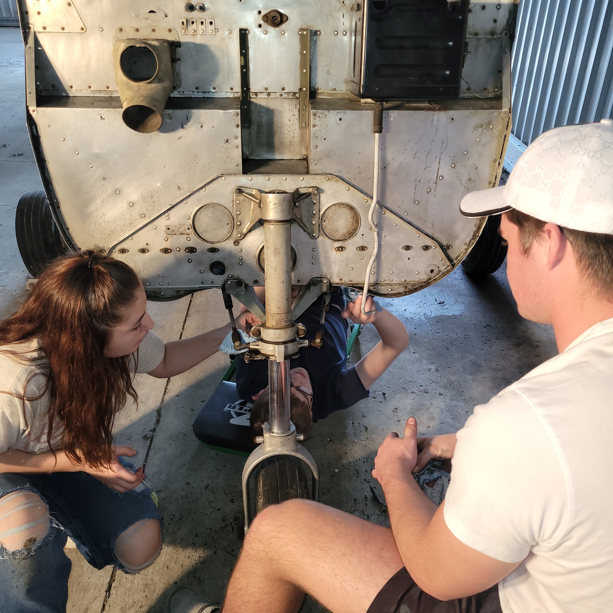 Students examine the Cessna’s nose landing gear. [Photo via Big South Fork Aerospace Academy]
