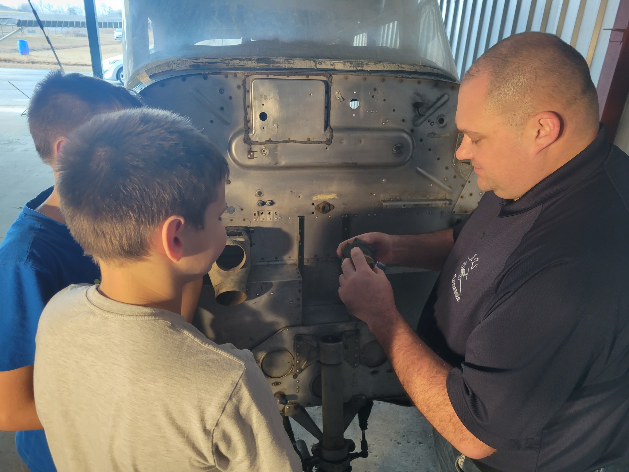 Dr. Tim Smith guides a couple of students working on the firewall. [Photo via Big South Fork Aerospace Academy]