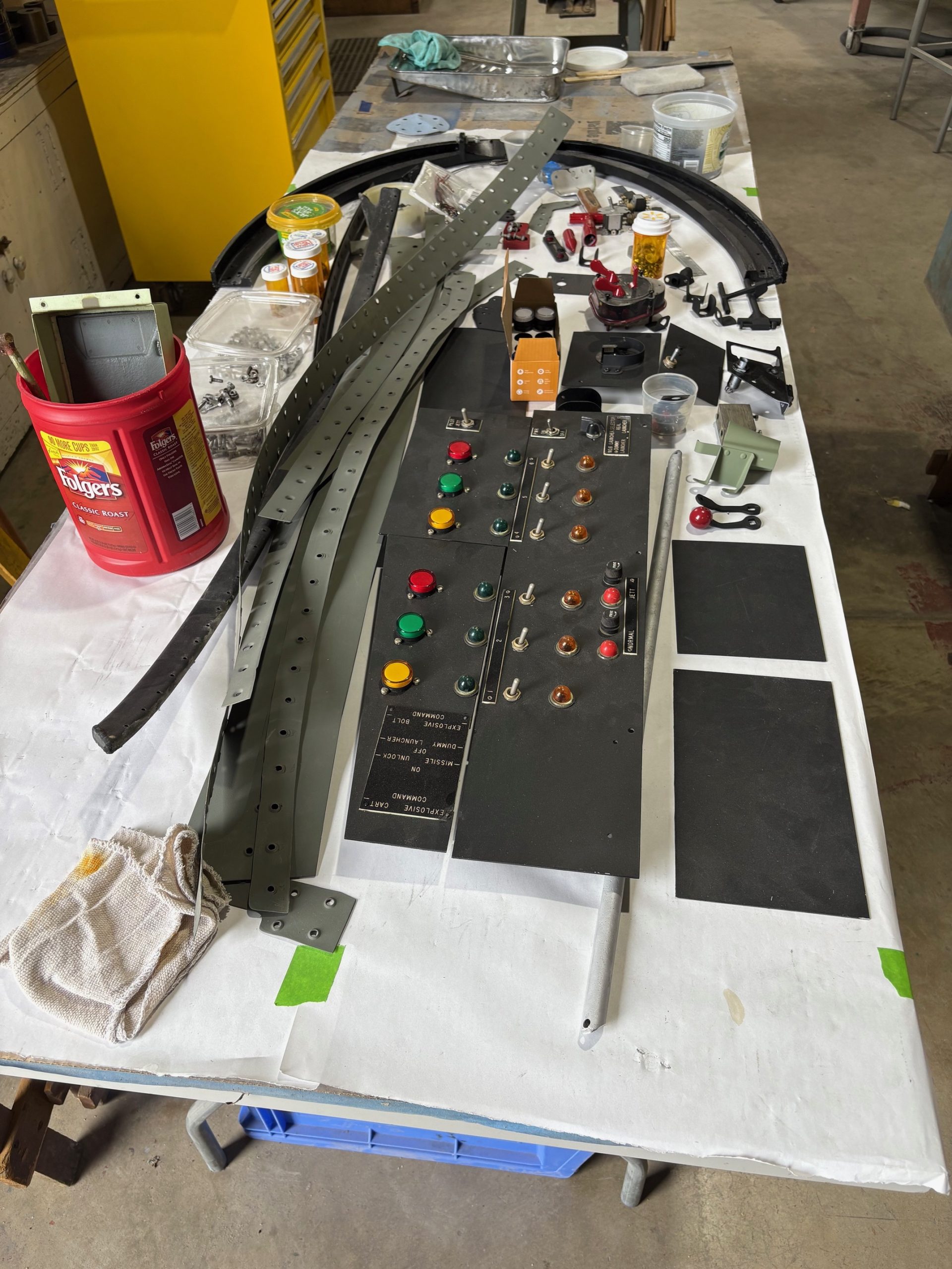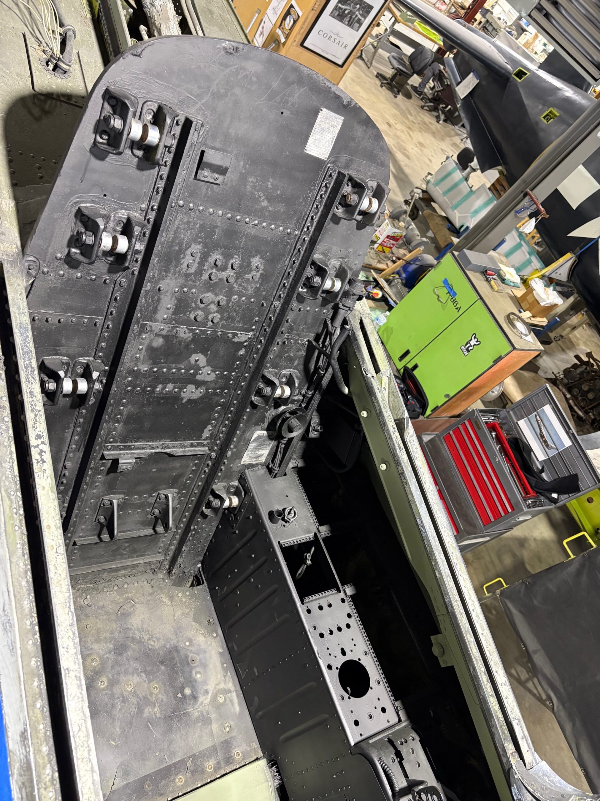 Work is also advancing on the museum’s Vought F7U Cutlass, one of the rarest jet fighters of the early Cold War era. The cockpit has been cleaned and painted, with new side panels under construction. Volunteers are addressing challenges with the nose gear, as the wheels have proven stubborn to remove. Custom tooling is being fabricated to solve the issue. Meanwhile, the fuselage has been patched, primed, and fitted with its aft section. Because the original latches are unserviceable, a new attachment mechanism is being developed to secure the aft end with the afterburner nozzles in place. The Chance Vought F7U-3 Cutlass (BuNo 129685) entered service on September 24, 1954, and saw multiple squadron assignments—including VF-81, VA-66, FASRON units, and VA-12—before being struck from Navy records in 1962 and moved to the Walter Soplata Aviation Collection in Ohio. In November 2021, it found a new home at the MAPS Air Museum, where its story continues.