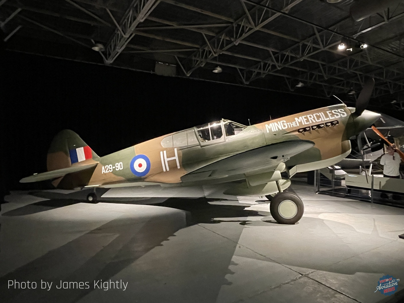 Originally built in New York by Curtiss Aircraft as a P-40E-1, with the USAAF serial 41-25123, it was supplied for Australian use by sea, and issued to the newly-formed 76 Squadron RAAF on May 4 1942 with the RAAF Serial A29-90. During May 1942, it was mostly flown by the British Squadron Leader Richard Edgar Brooker RAF, then the commanding officer and the aircraft had been named Ming the Merciless on the starboard cowling. “Ming” was the arch enemy of Flash Gordon, a very popular newspaper strip cartoon of the era.