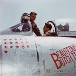 Captain McConnell is America’s highest-scoring jet ace, but interestingly, he started out as a navigator on B-24 Liberator bombers during WWII, flying on sixty combat missions. He stayed in the military after following the Allied victory though, and pursued his dream of becoming a fighter pilot; earning his wings at Williams AFB, Arizona in February, 1948. He joined the Korean conflict, quite late, arriving for service in September, 1952. All of his victories came between January and May, 1953, with the first eight being scored in F-86E-10 51-2753. McConnell had each of his fighters painted with the name Beauteous Butch on the side in honor of his wife Pearl, whose nickname was “Butch”. His second Sabre was F-86F-15 51-12971 however, a Chinese MiG-15 pilot named Daoping Jiang got the better of him on April 12th, 1953, shooting him down over the Yellow Sea. Fortunately, McConnell managed to eject from his stricken fighter, and a rescue helicopter plucked him from the water and brought him safely home. He was back flying in combat the following day though, and shot down another MiG-15. The third Sabre which McConnell flew in combat successfully was F-86F-1 51-2910. He shot his final two MiG’s and damaged a third on his final combat mission on May 18th, 1953. His Sabre was painted in his honor following this mission, renamed now as BEAUTIOUS BUTCH II.