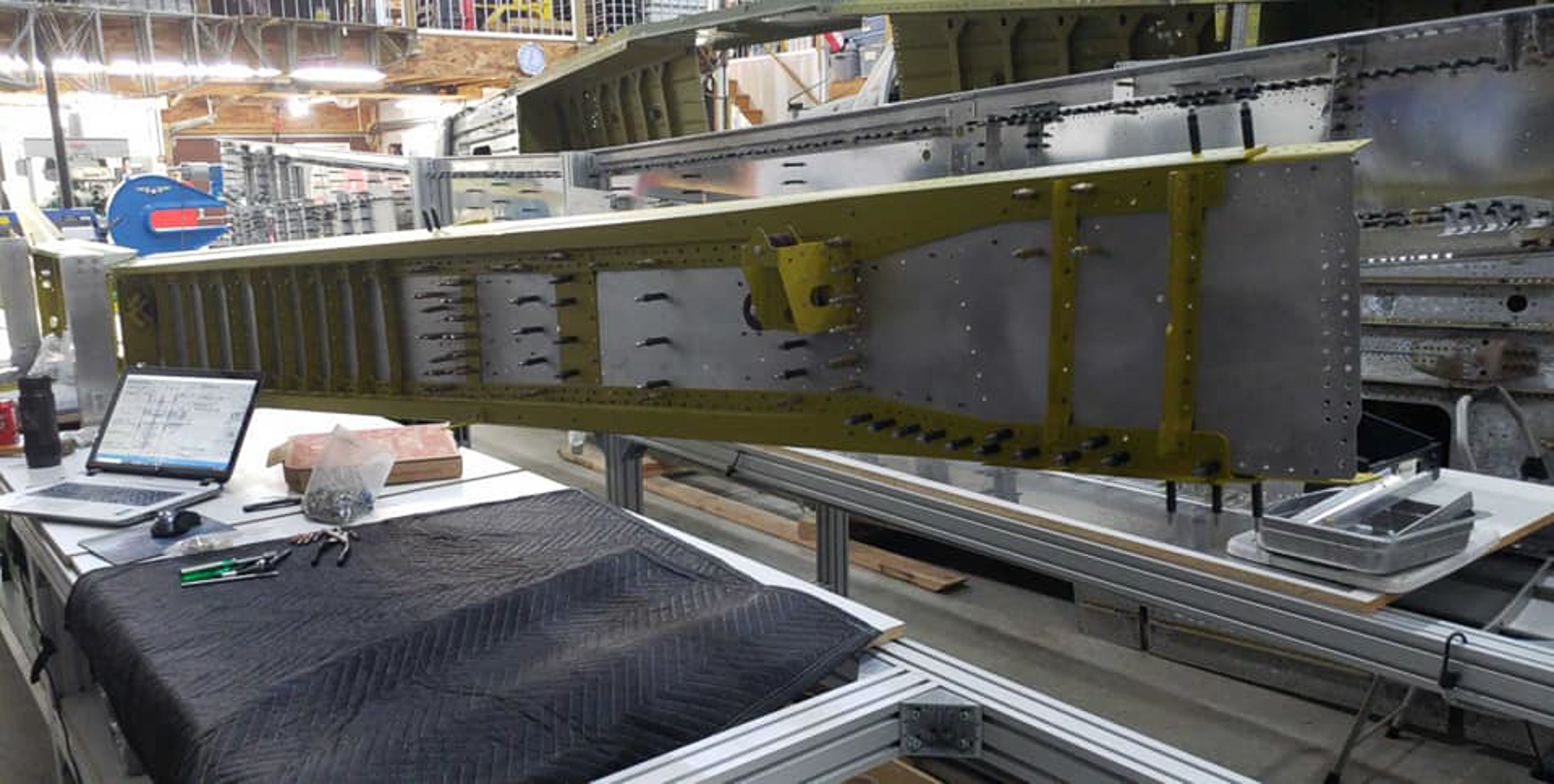 The B-25’s rear spar coming together. (image via Patrick Mihalek)