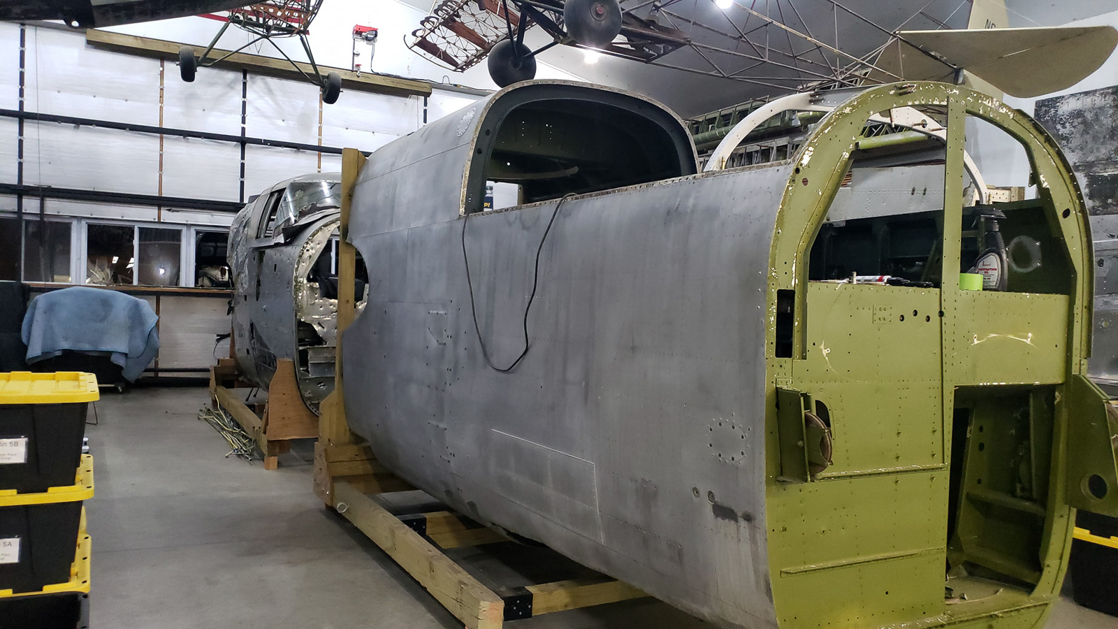 A shot from last year showing the two B-25 forward fuselage sections which the Warbirds of Glory Museum has in their shop. The one to the front is going to go into the Sandbar Mitchell. (image via Warbirds of Glory)