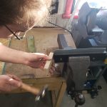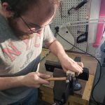 Sean gently shaping the new rib on the forming block. (via Warbirds of Glory Museum)