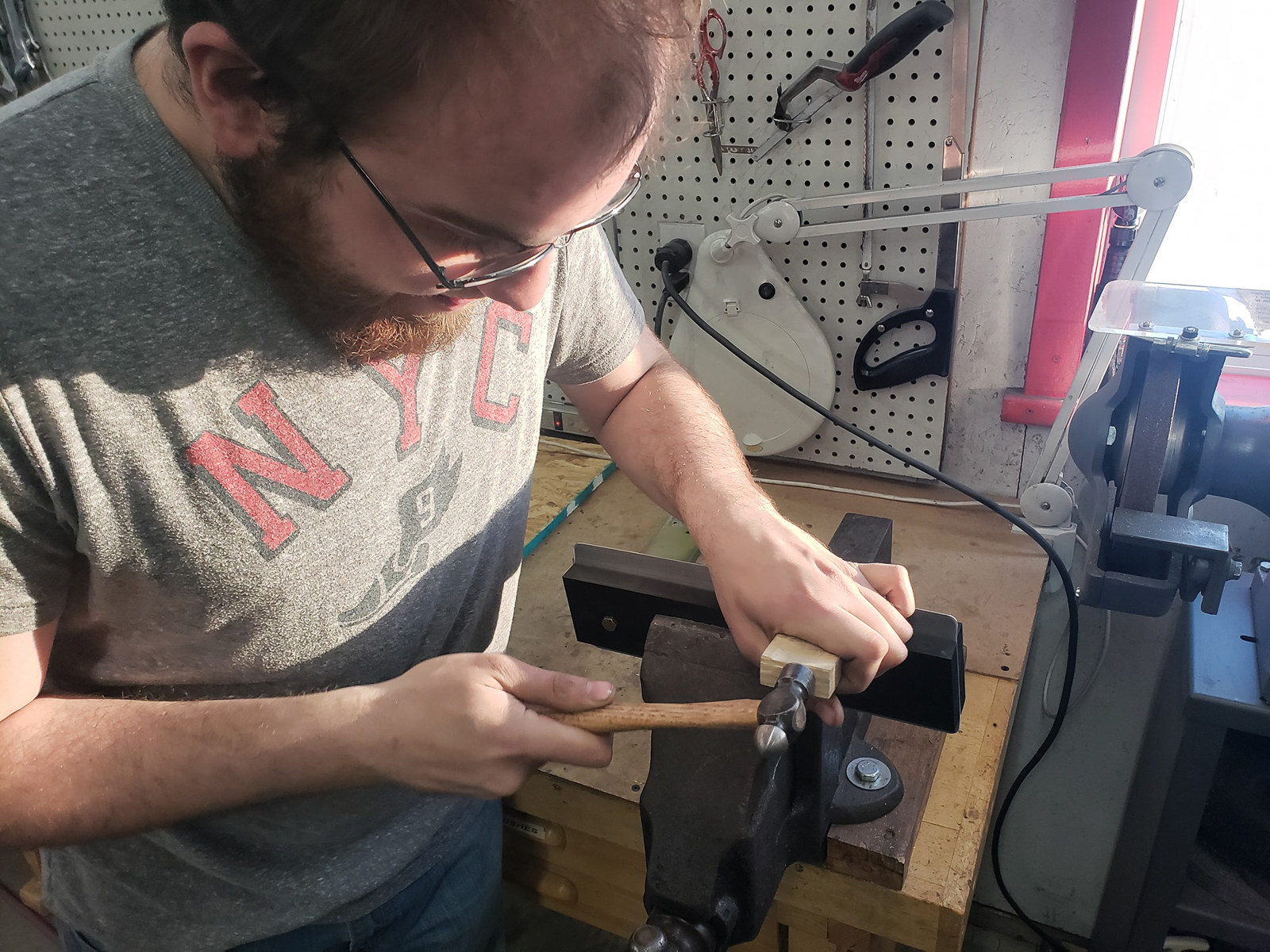 Patrick Mihalek with some of the rivets which the museum recently received. (image via Patrick Mihalek)