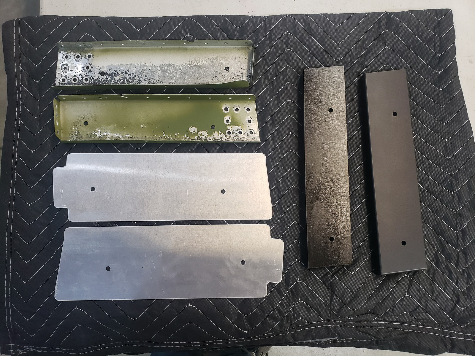 The original ribs are shown here alongside the blanks for their replacements and the two forming dies which are needed to form the blanks into the correct shape. (via Warbirds of Glory Museum)