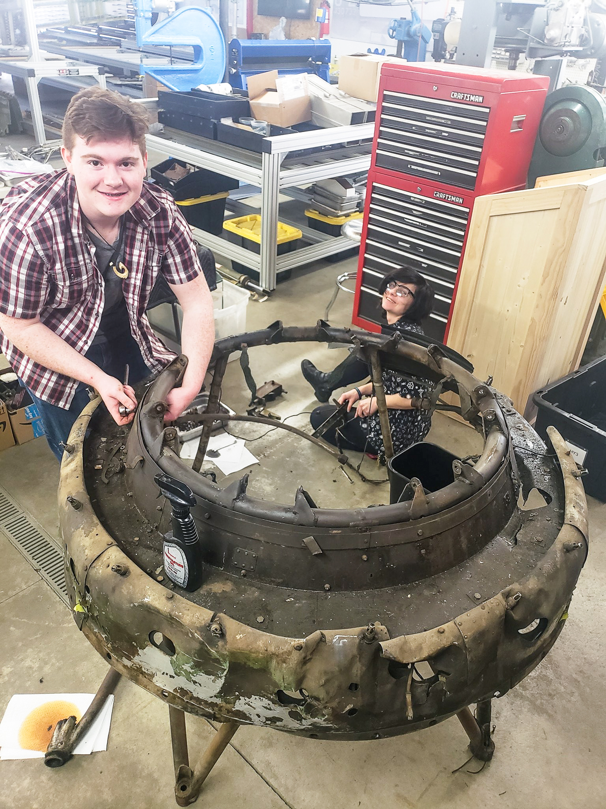 Katelyn Brooks with the B-25 forward fuselage. A graduate of the Warbirds of Glory Museum’s Kittyhawk Academy, Katelyn has decided to make a career out of aviation. (image via Warbirds of Glory)