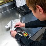 Copying holes from the old skin to the new sheet which will replace it. (image via Patrick Mihalek)