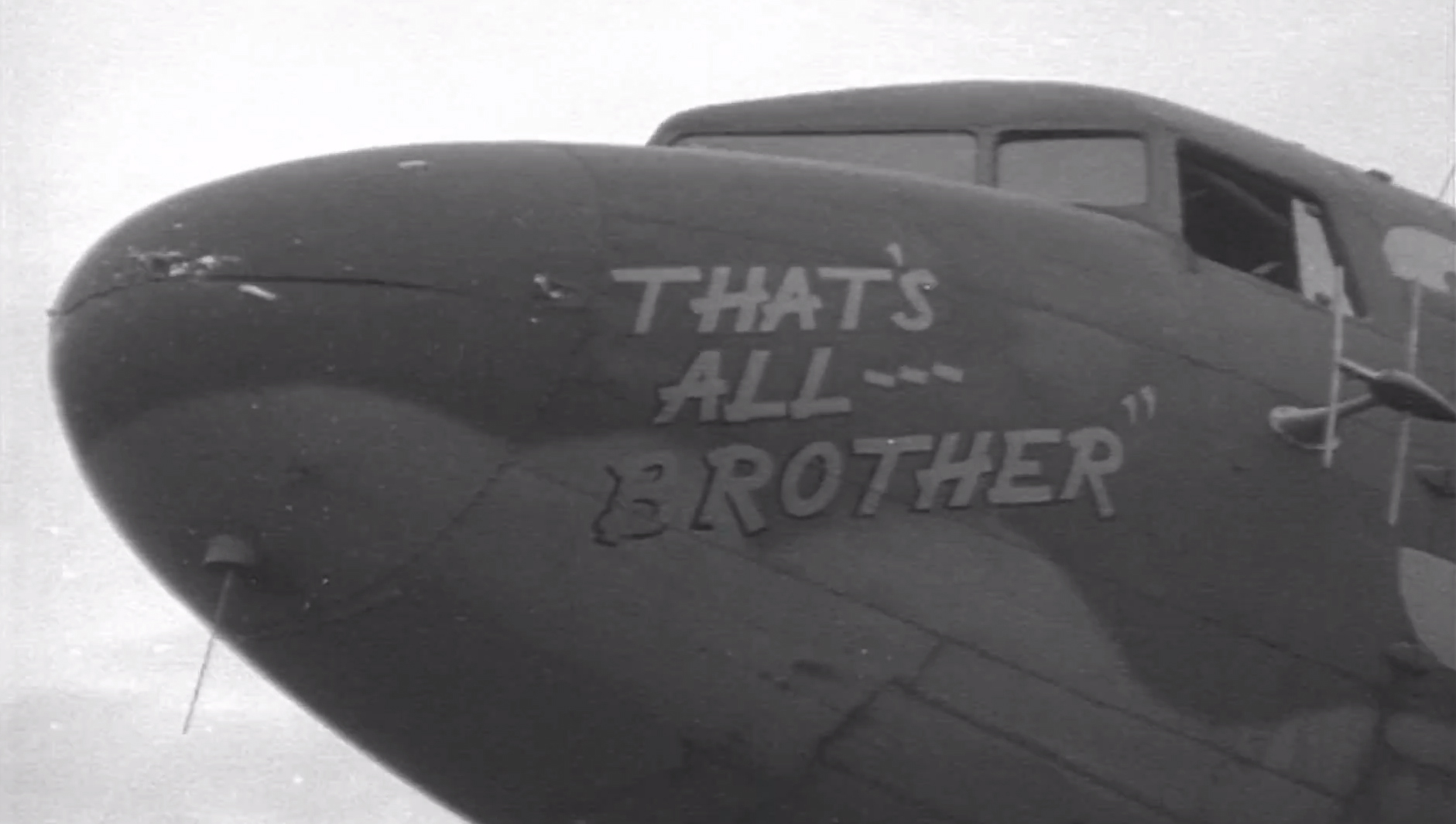 PRESS RELEASE – The transport aircraft that led the D-Day invasion of Normandy, France more than 70 years ago has been rediscovered in an aircraft boneyard in Wisconsin. Believed lost to history, the airplane was slated to be cut apart and remanufactured as a modern turbo-prop. The Commemorative Air Force (CAF) is launching a Kickstarter funding campaign to save and restore the plane to flying condition. Five hours before the D-Day beach landings began, That’s All, Brother led a formation of more than 800 aircraft that dropped 13,000 paratroopers behind enemy lines. Historic film, shot as the airplane departs on its D-Day mission, shows it was equipped with an early form of airborne radar to guide the invasion force to the drop zone. The aircraft was named That’s All, Brother as a personal message to Adolf Hitler that, with the Allied invasion of Europe, his plans were done.