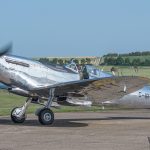 As stated earlier, MJ271 belongs to the Boultbee Flight Academy, based at Goodwood Aerodrome (the former RAF Westhampnett) near Chichester in West Sussex, England. Boultbee maintain a number of Spitfires, including a pair of two-seaters, which they use for flight training and flight experience rides for paying clients. But MJ271 is different. Boultbee had the aircraft restored such that almost every square inch of her bare aluminum airframe is now polished to a mirror finish, including the wings. She appears as if she were indeed made of silver, hence her new monicker as the ‘Silver Spitfire’. While this is an unusual choice in the present world, where civilian warbird paint schemes are considered passé and have largely been discarded in favor of authentic military liveries, it is arguable the Silver Spitfire’s already superlative beauty has been measurably enhanced by her present condition.