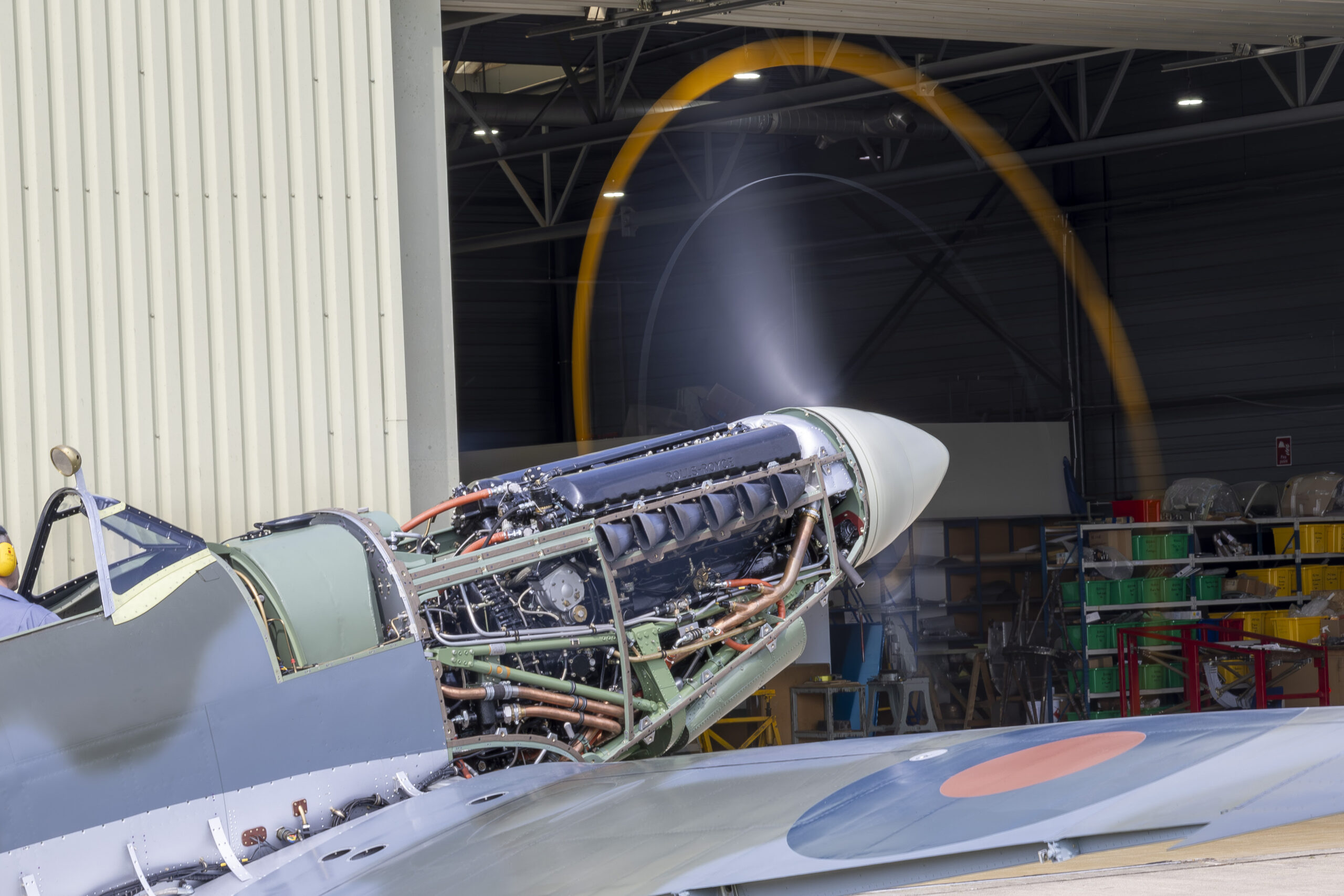In 2016, ‘336 began her “Ten Year MOT” – that is to say, that every ten years the Civil Aviation Authority (CAA) requires the owner/maintenance company to perform a major inspection of the aircraft, including wings off, spar and undercarriage, Non-Destructive Testing, etc. (I believe as there is no “design authority” for Spitfires, the CAA requires civilian Spits and Seafires to follow the Royal Air Force’s Battle of Britain Memorial Flight maintenance schedules, of which this is a part).