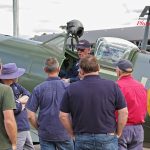 Sitting in the MH603’s cockpit following his successful first post-restoration flight in the fighter, Stephen Death is greeted by the restoration team, anxious to learn how the Spitfire performed. (photo by Darren Mottram via Aviation Spotters Online)