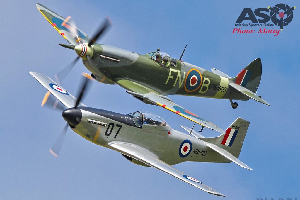 MH603 in close formation with Ross Pay’s Mustang Mk.21 A68-107 during the Spitfire’s first test flight on December 11th. (photo by Darren Mottram via Aviation Spotters Online)