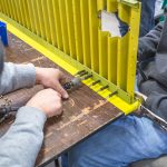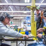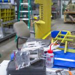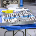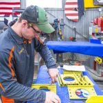 Hunter works on the access holes that go through the pilot’s floor