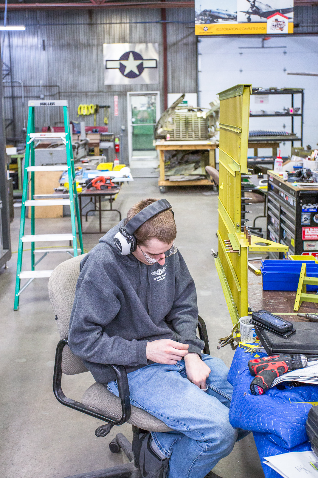 Aaron is working on the lower main tank bay floor. (photo by John LaTourelle)